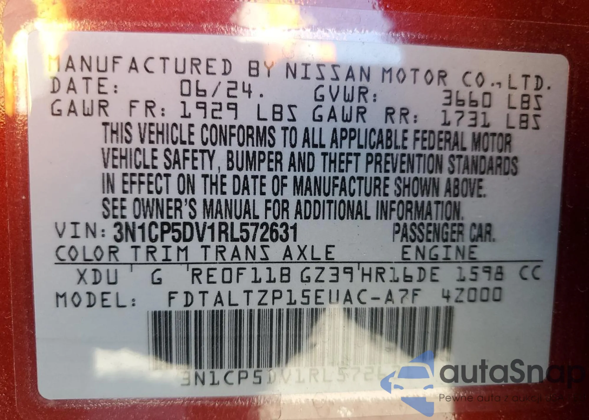 • VIN 3N1CP5DV1RL572631
