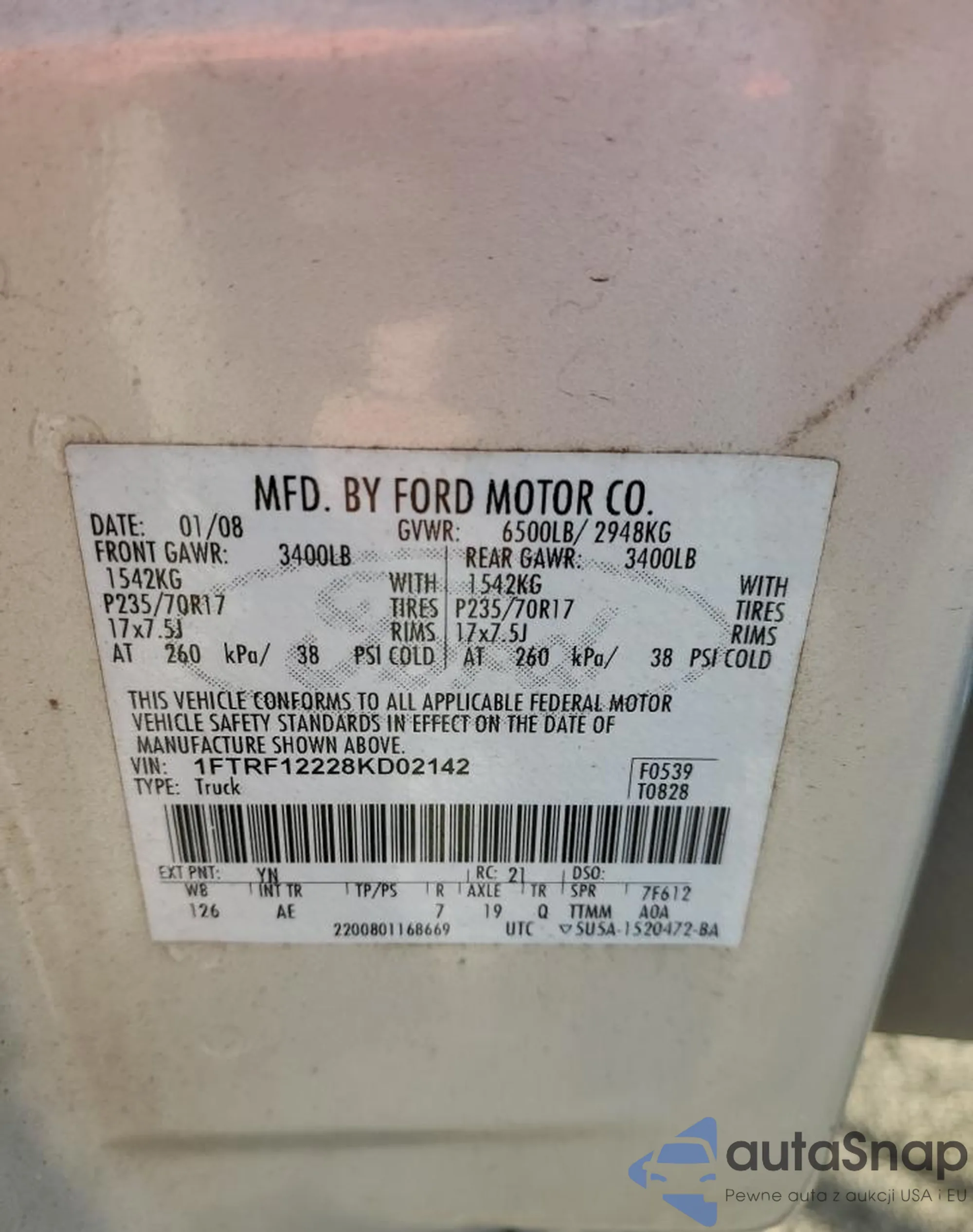 LOT: 52527254 VIN: 1FTRF12228KD02142