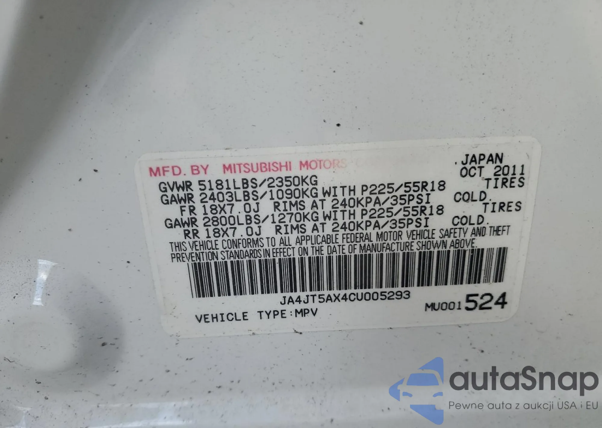 • VIN JA4JT5AX4CU005293