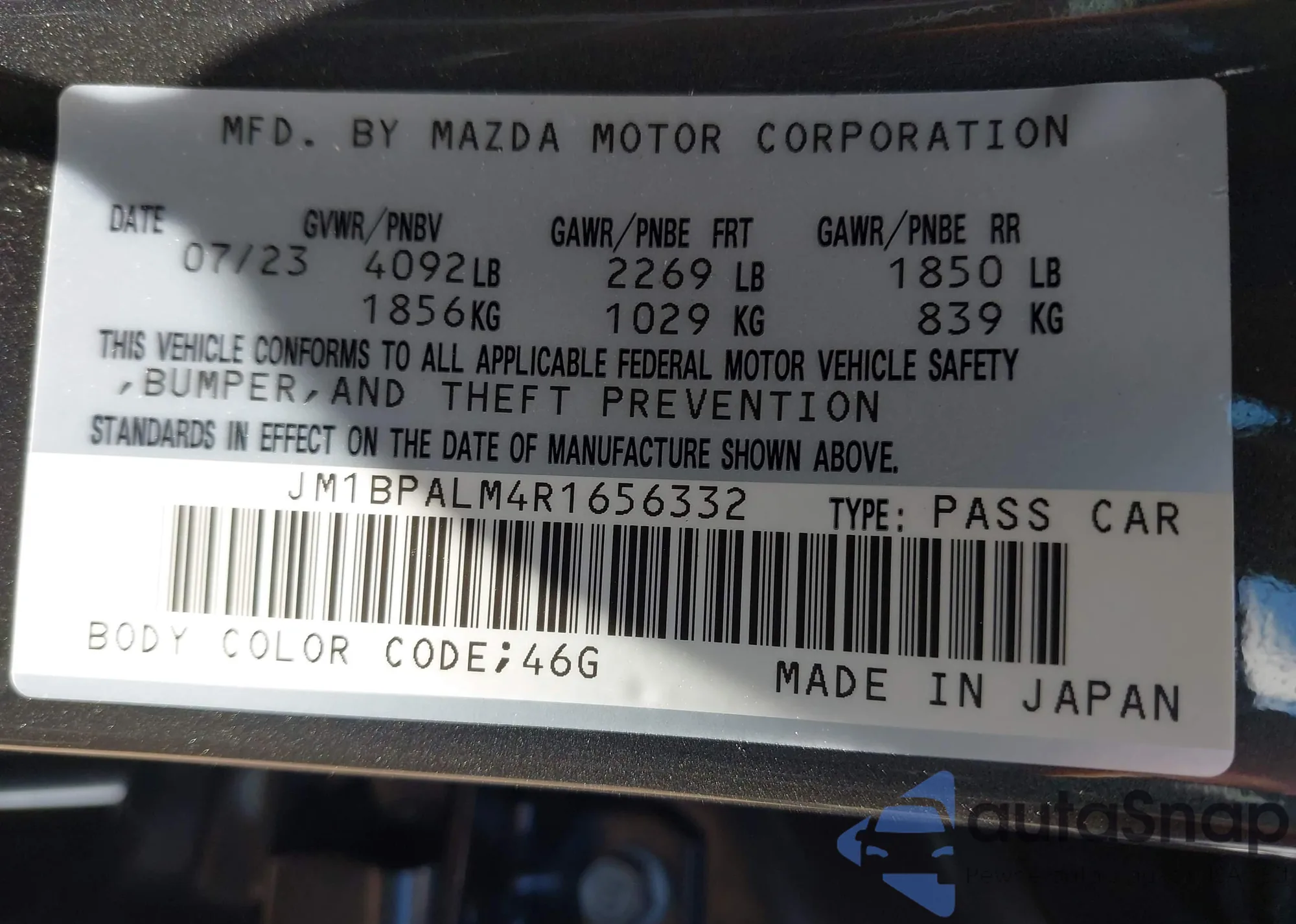 LOT: 42536465 VIN: JM1BPALM4R1656332