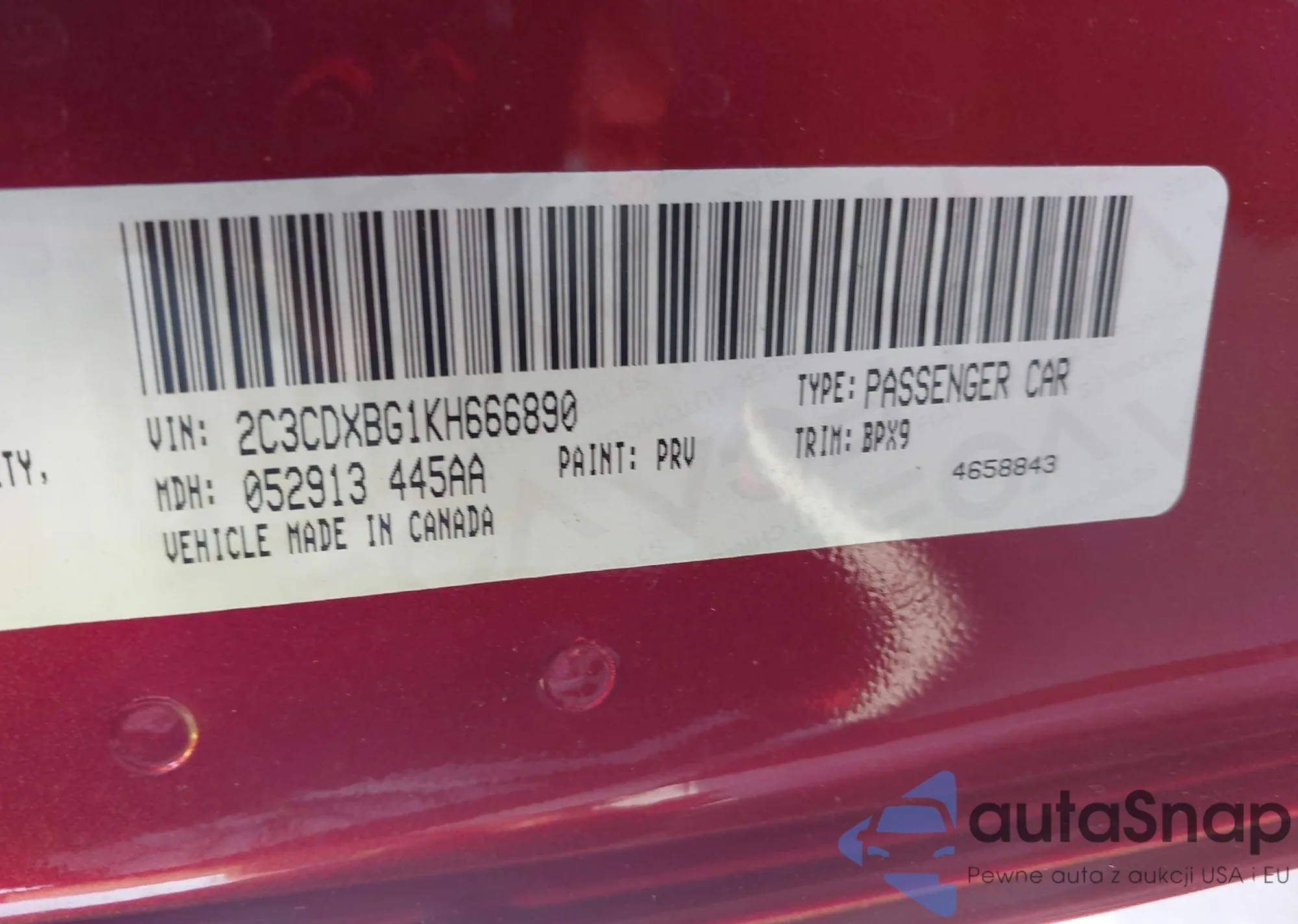 • VIN 2C3CDXBG1KH666890