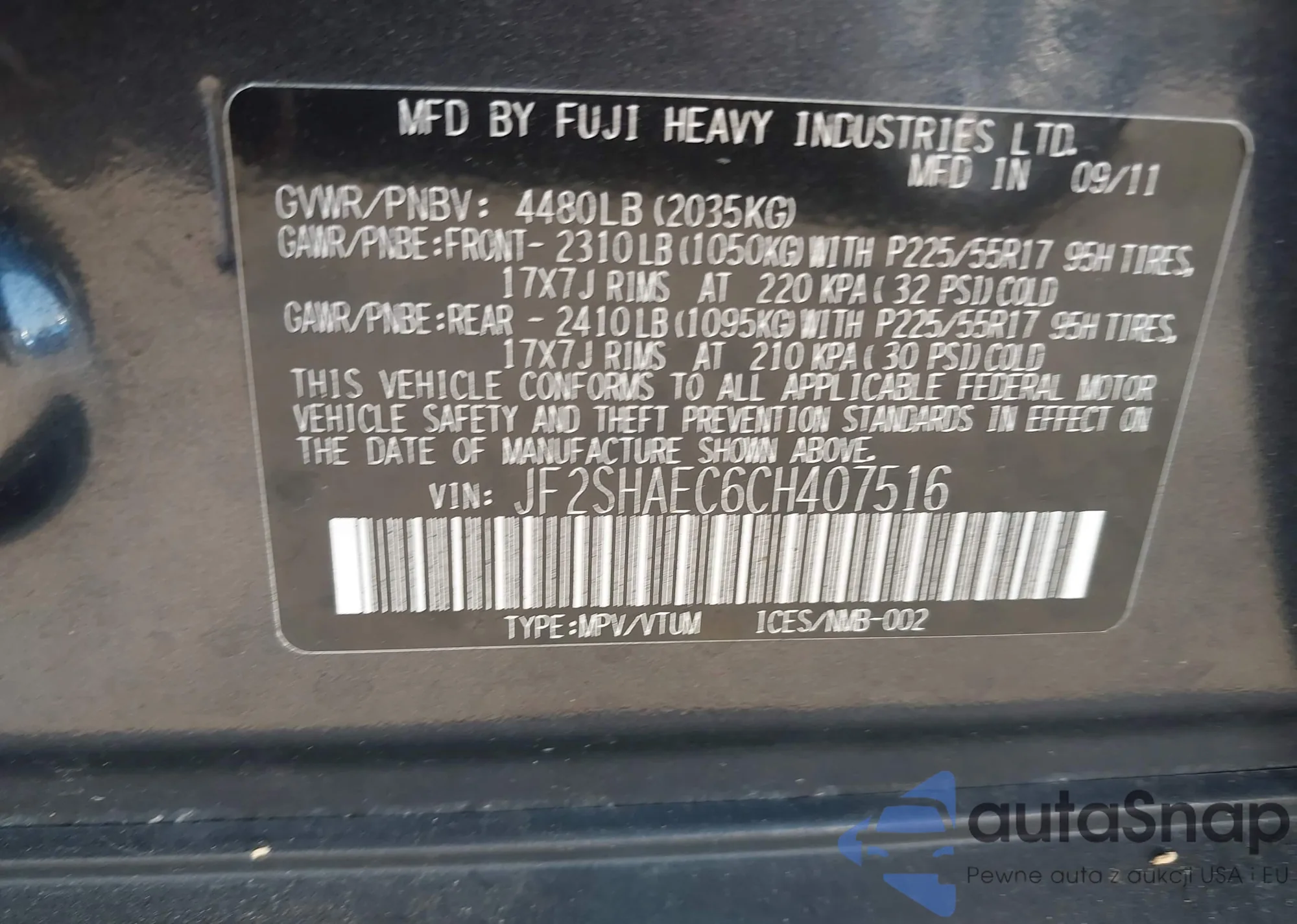 • VIN JF2SHAEC6CH407516