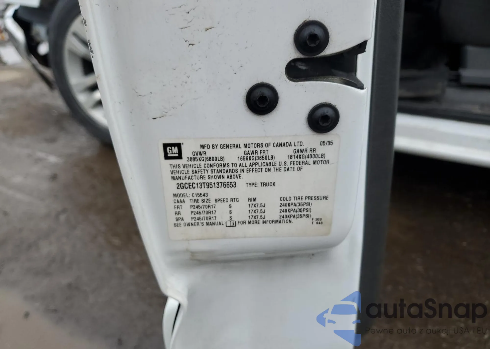 • VIN 2GCEC13T951376653