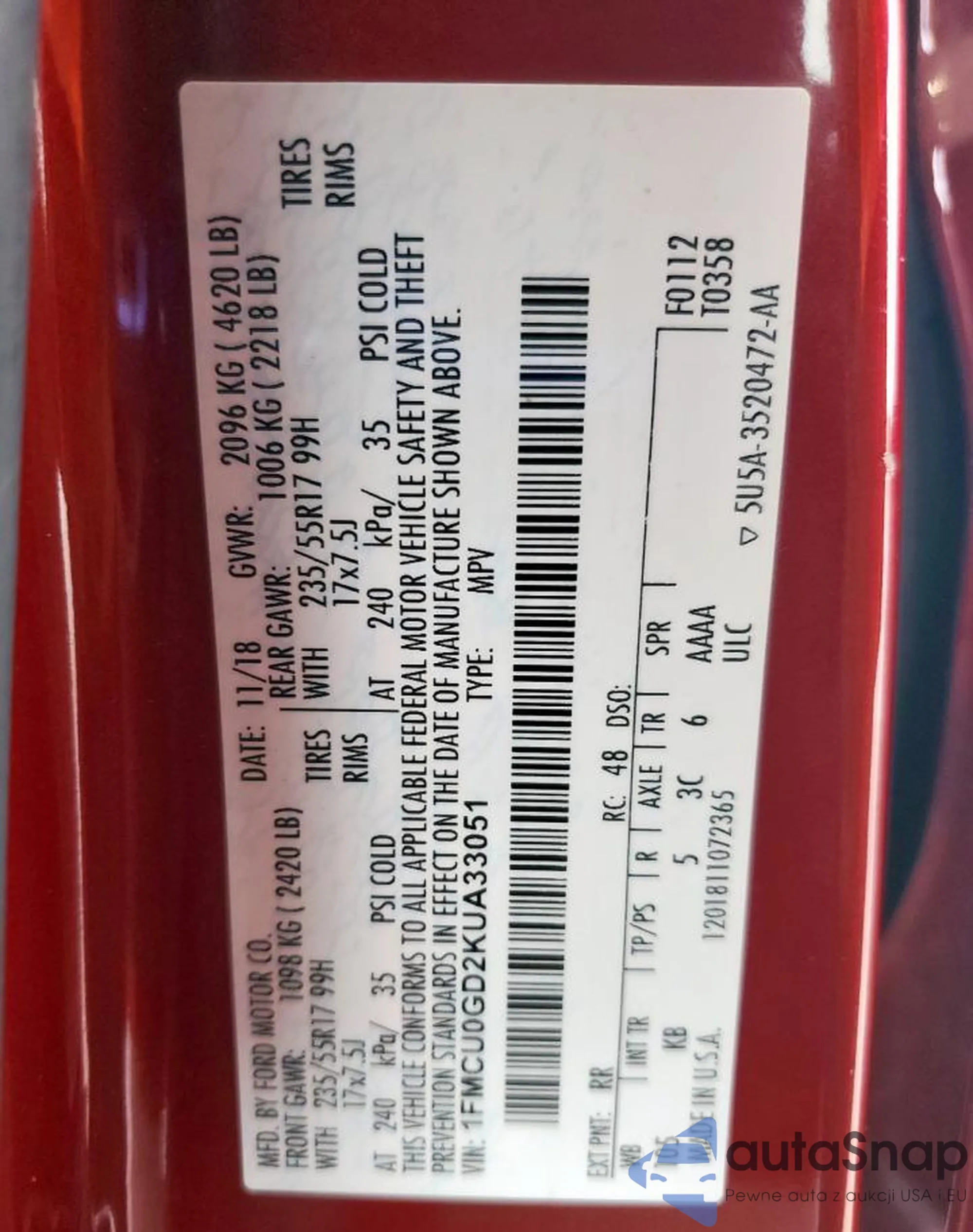 • VIN 1FMCU0GD2KUA33051
