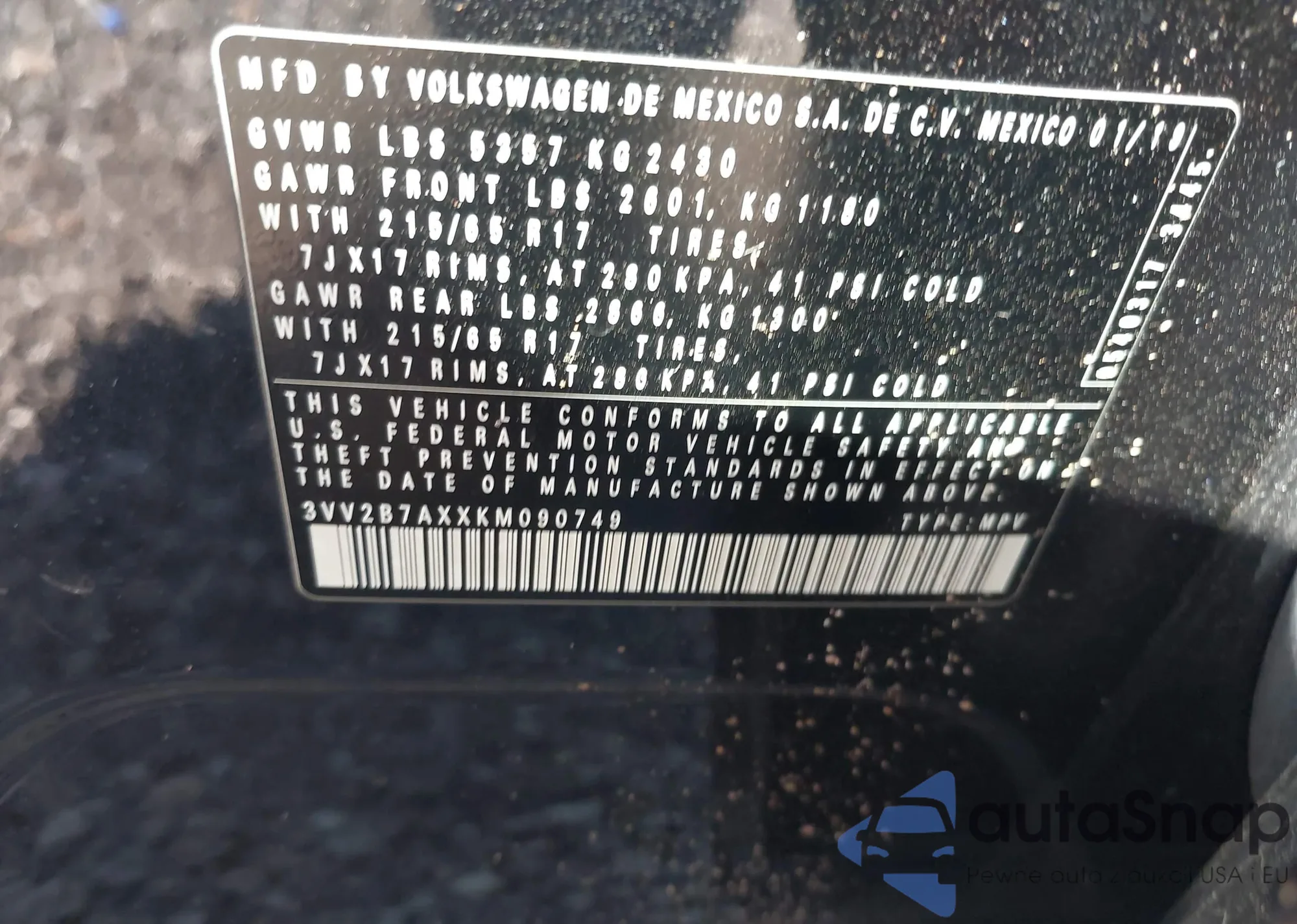 • VIN 5TDBK3EH7DS245366