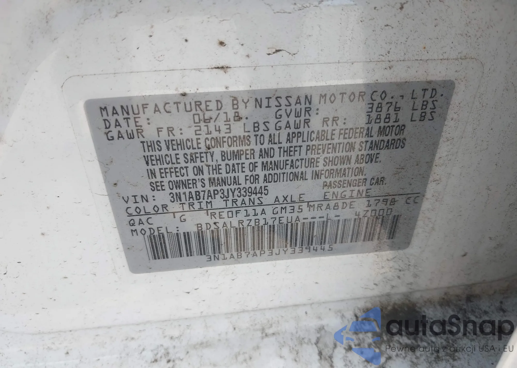 • VIN 3N1AB7AP3JY339445