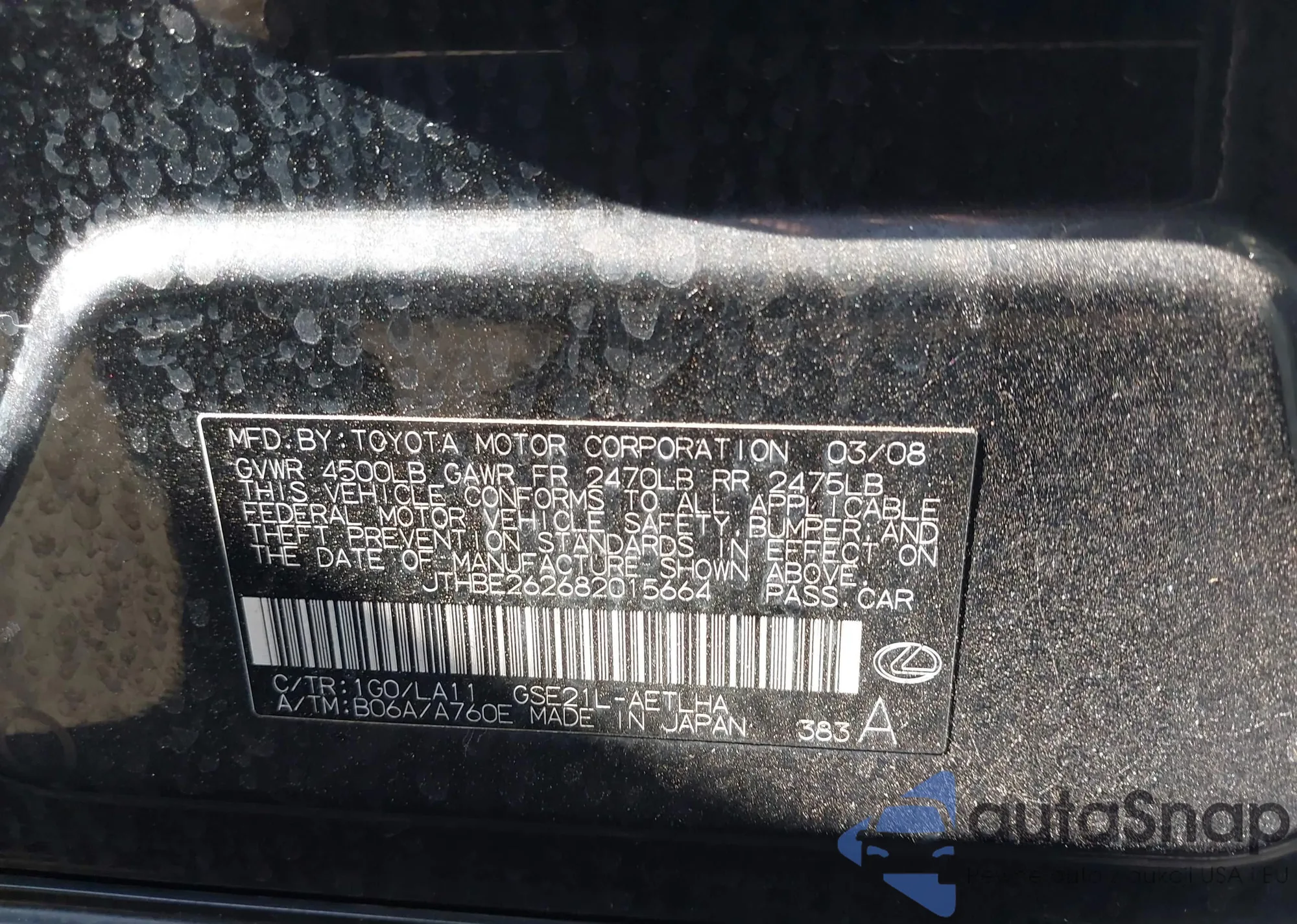 LOT: 42663834 VIN: JTKDE177170153338