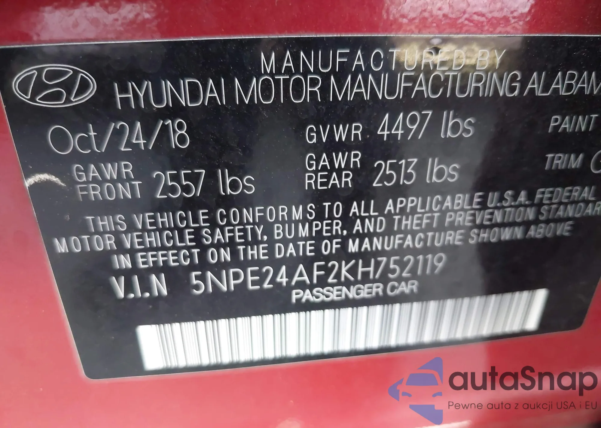 • VIN 5NPE24AF2KH752119