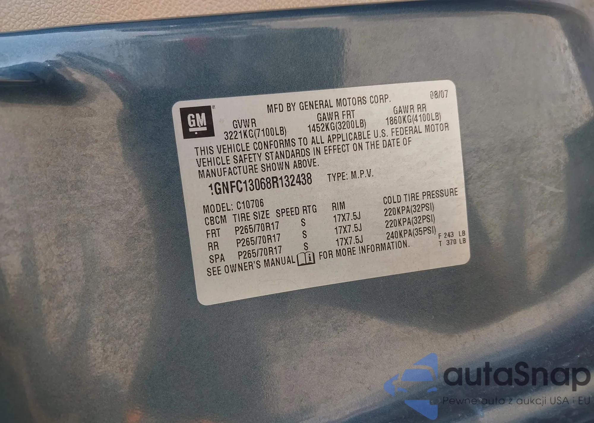 • VIN 1GNFC13068R132438