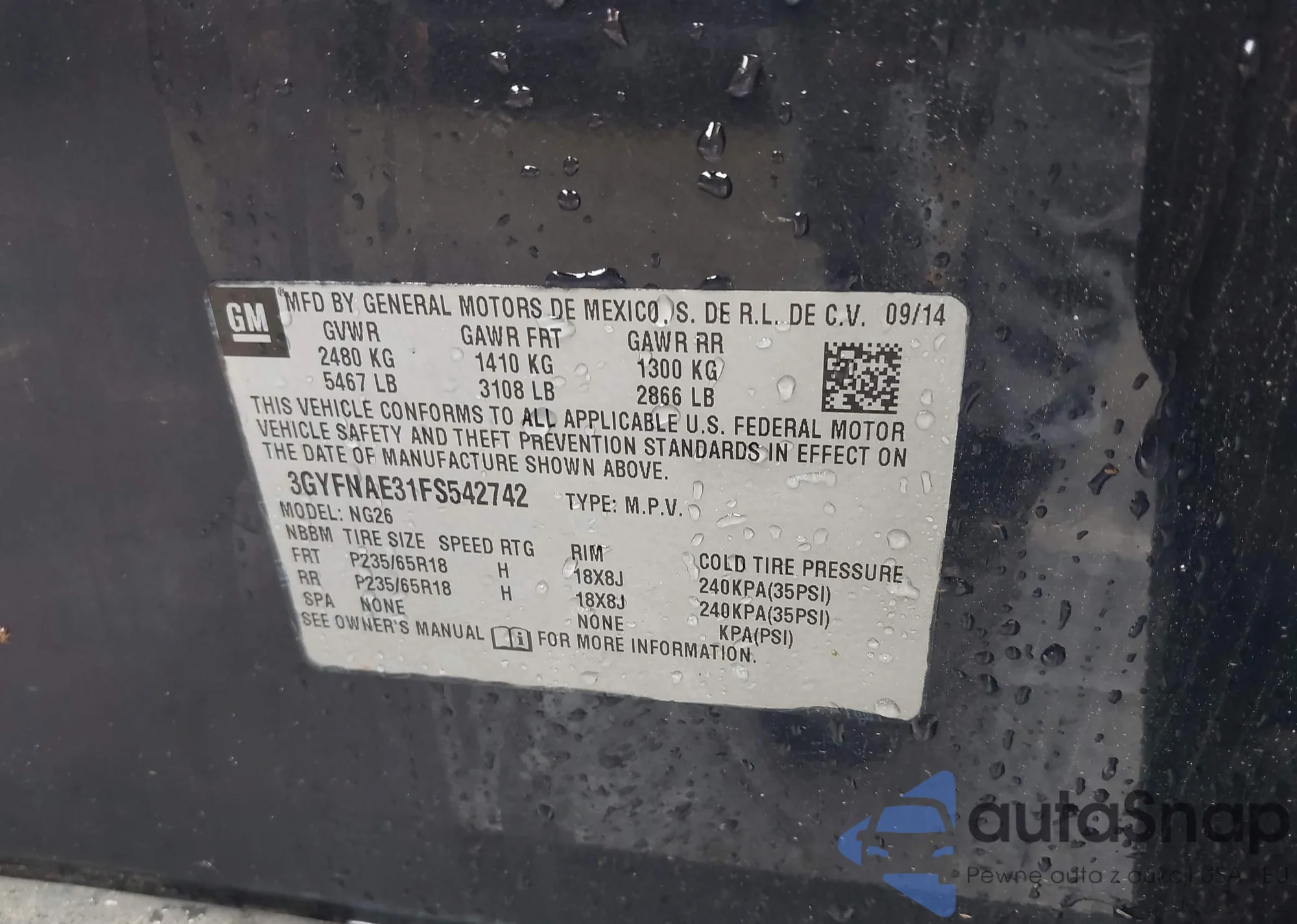 • VIN 3GYFNAE31FS542742