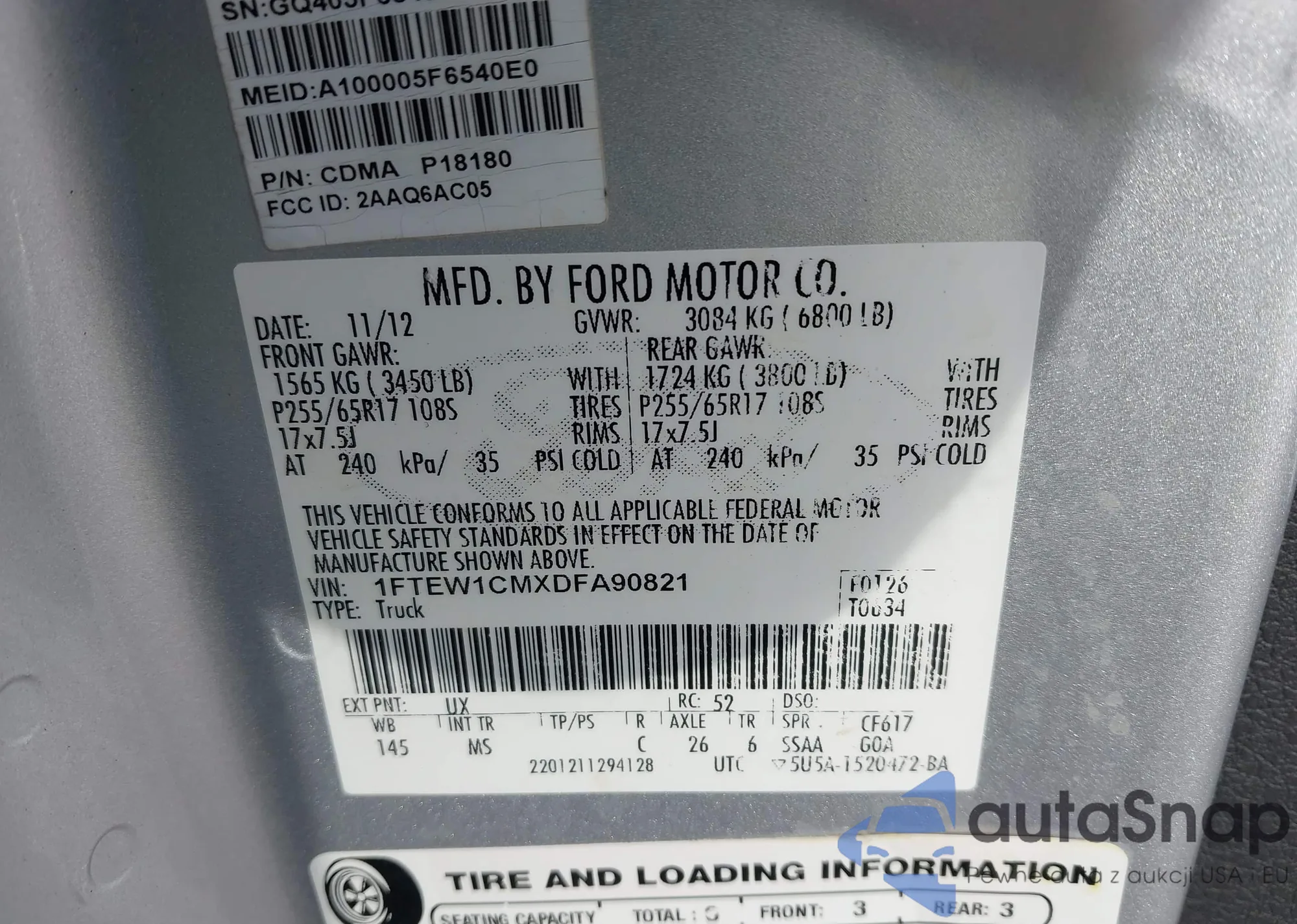 LOT: 42637129 VIN: 1FTEW1CMXDFA90821