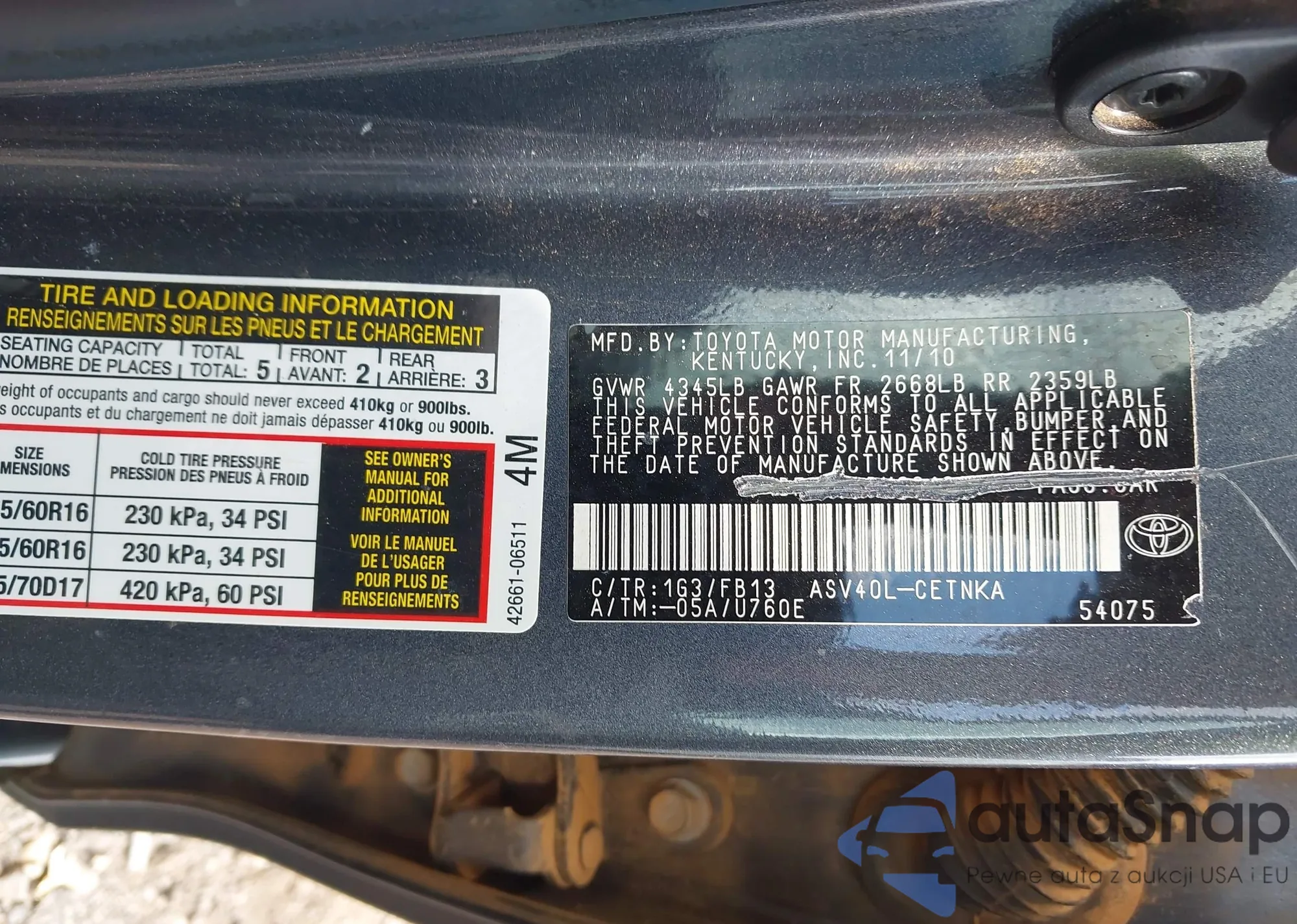 LOT: 42682214 VIN: 4T1BF3EK6BU681923