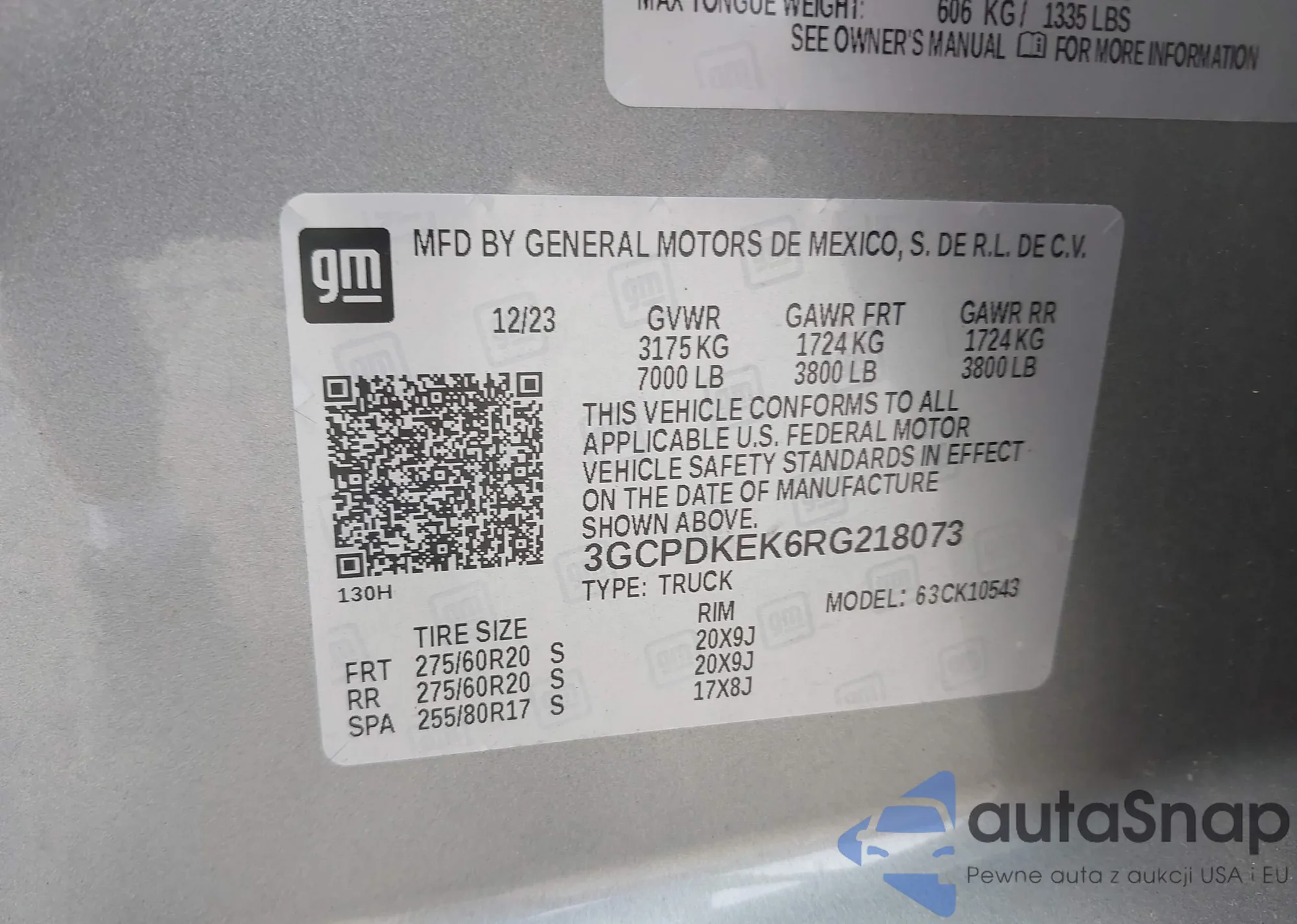 • VIN 3GCPDKEK6RG218073