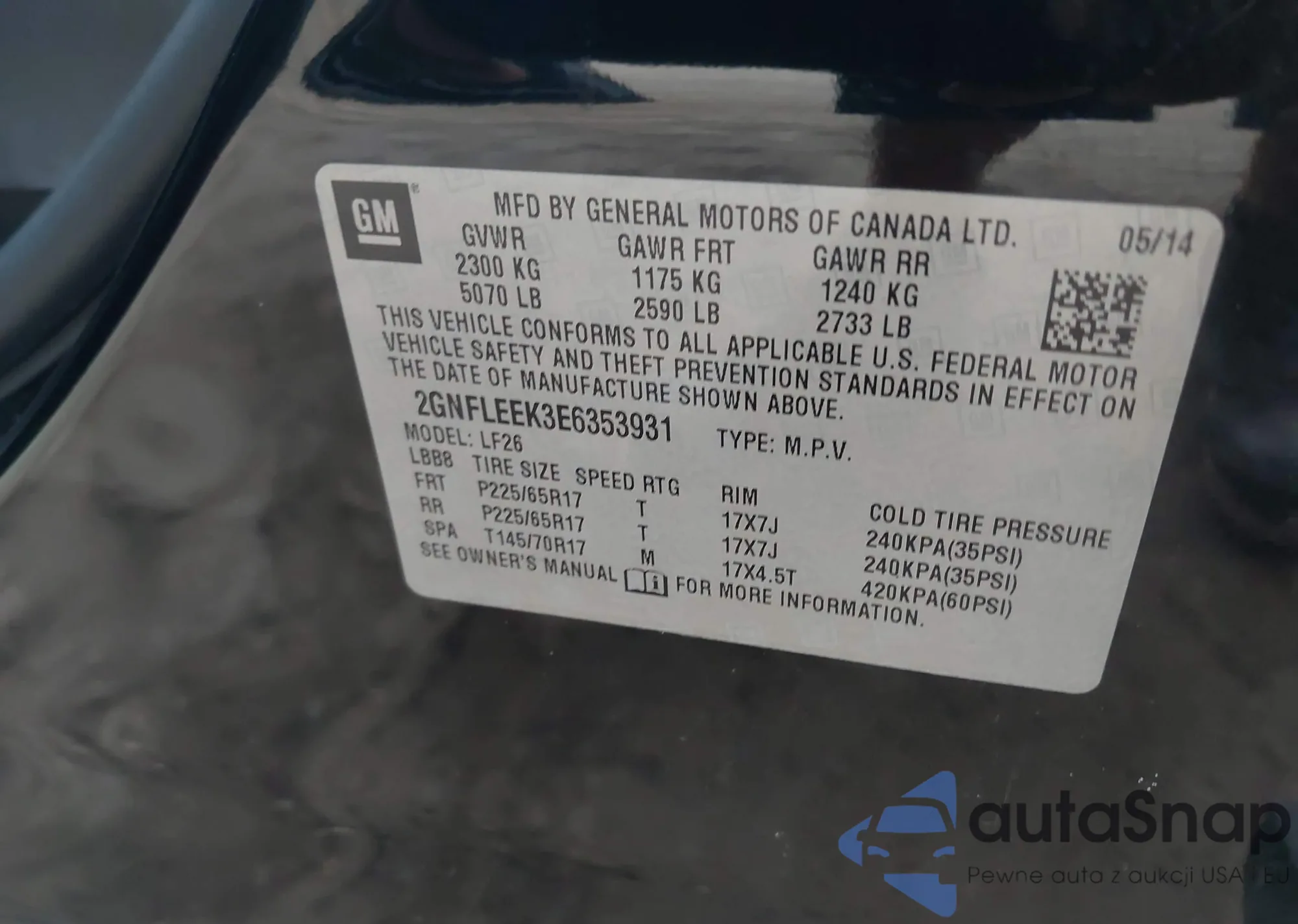 • VIN 2GNFLEEK3E6353931