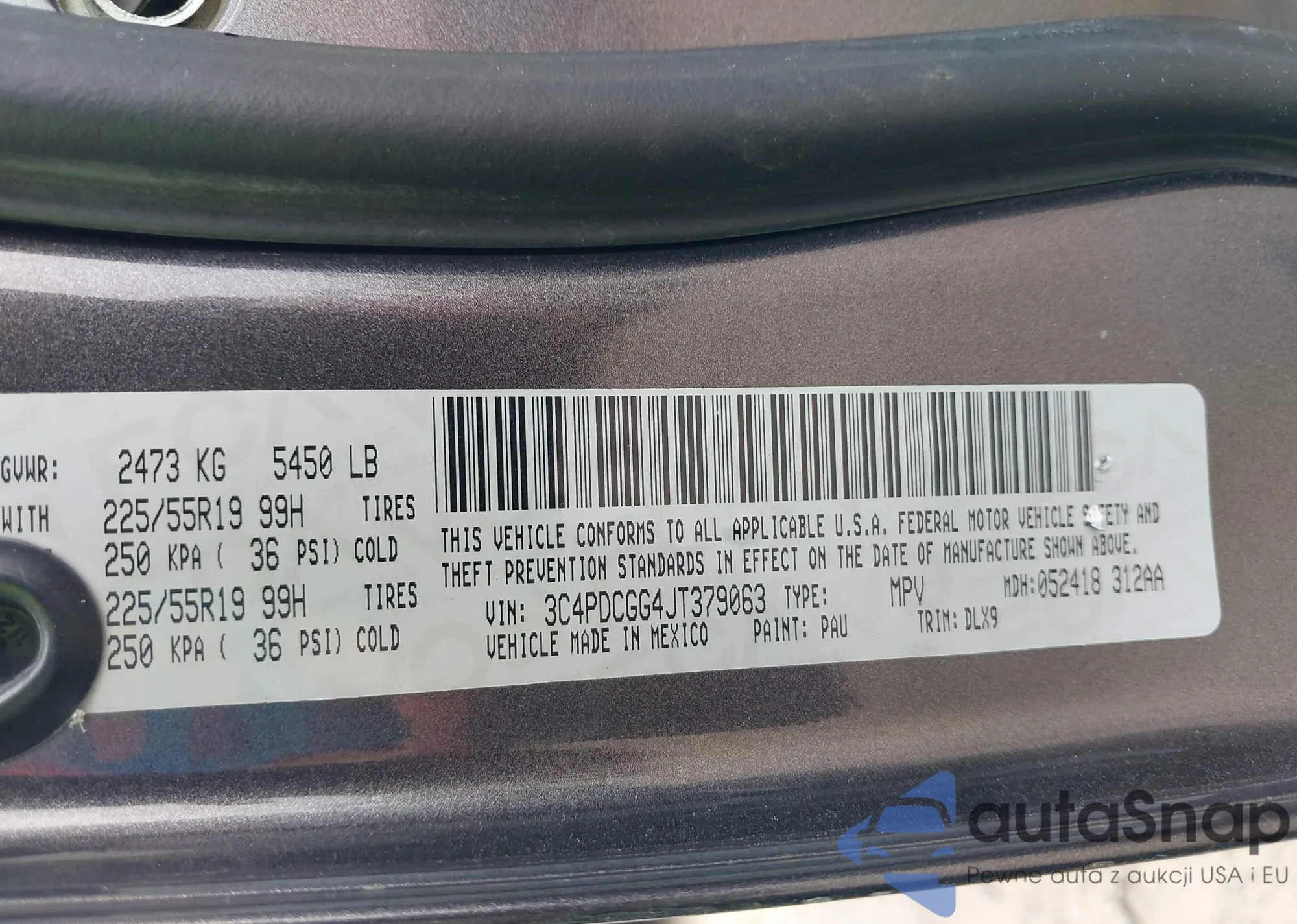 LOT: 42764136 VIN: 3C4PDCGG4JT379063