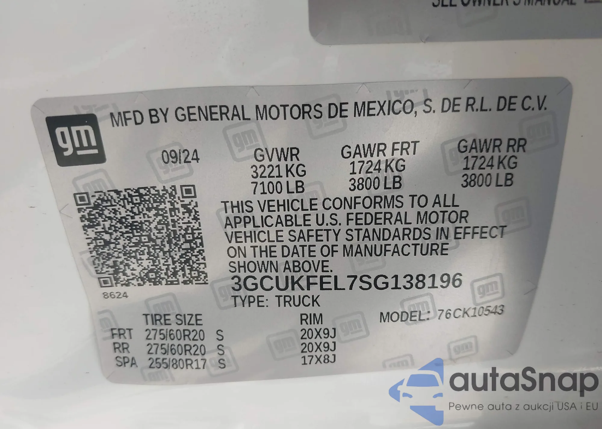 • VIN 3GCUKFEL7SG138196