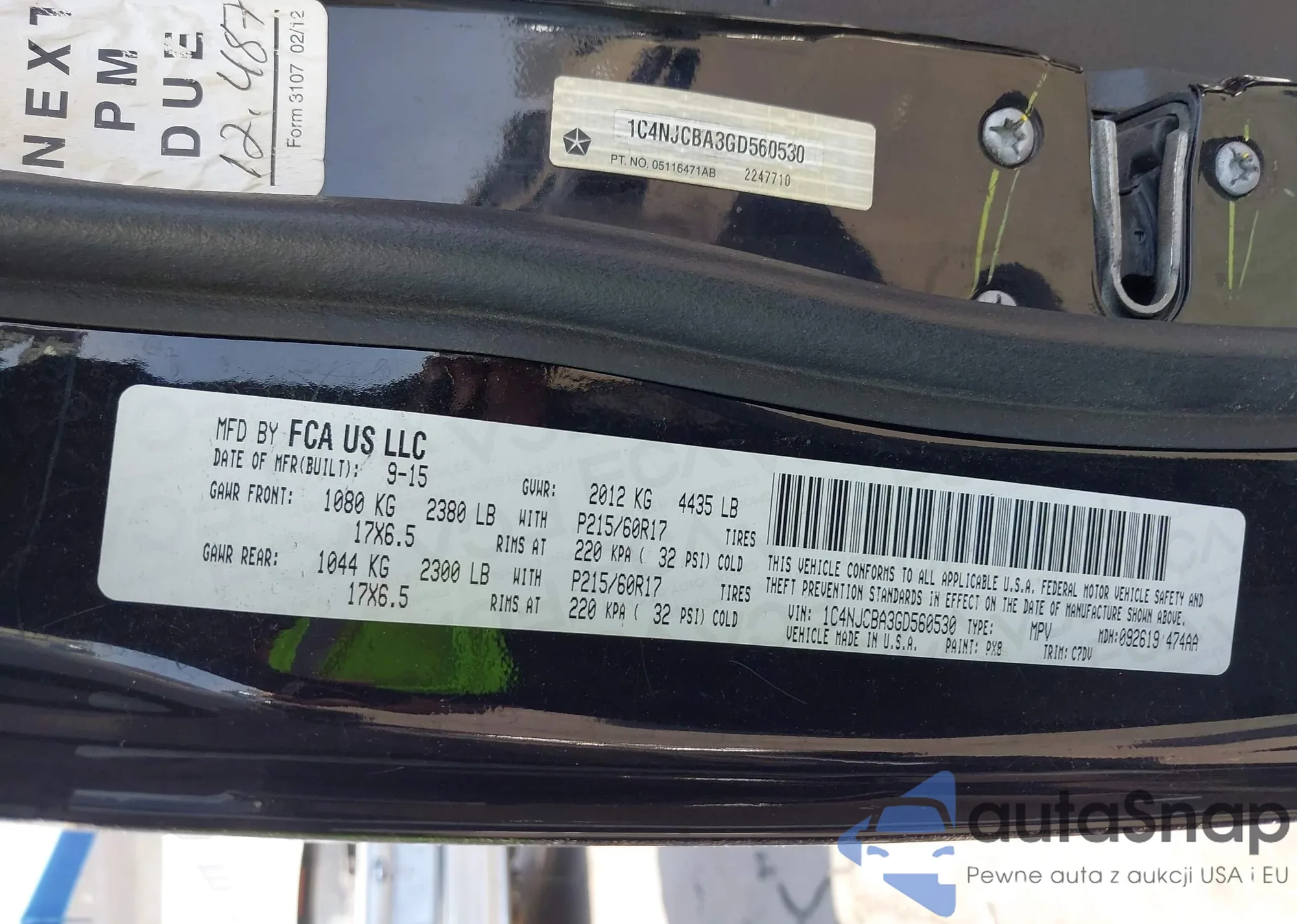 • VIN 1C4NJCBA3GD560530