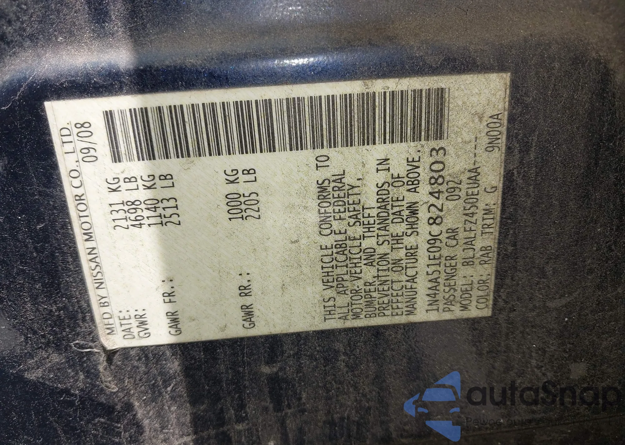 LOT: 42663349 VIN: 1N4AA51E09C824803