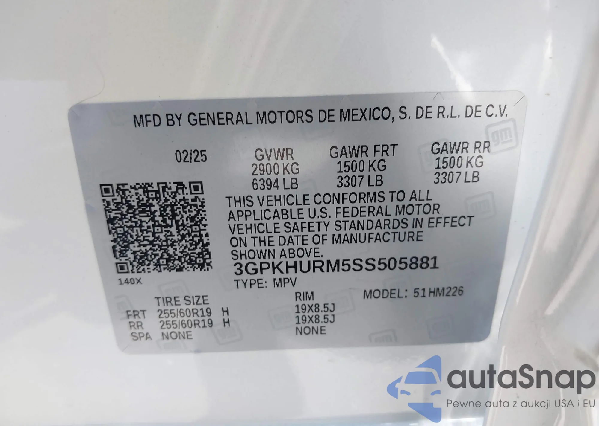 • VIN 3GPKHURM5SS505881