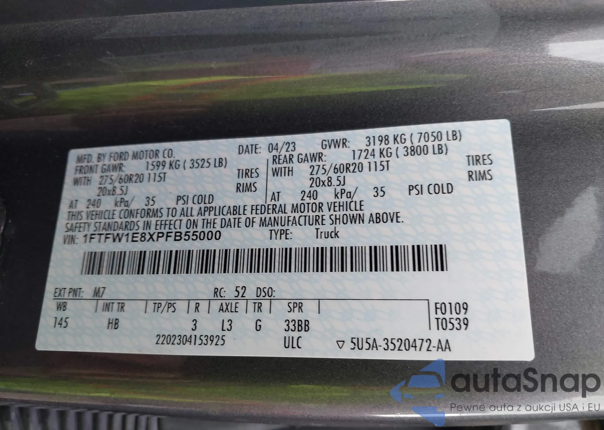 • VIN 1FTFW1E8XPFB55000