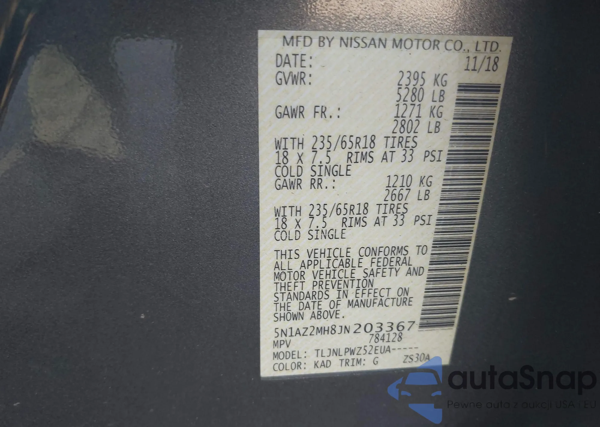 • VIN 5N1AZ2MH8JN203367