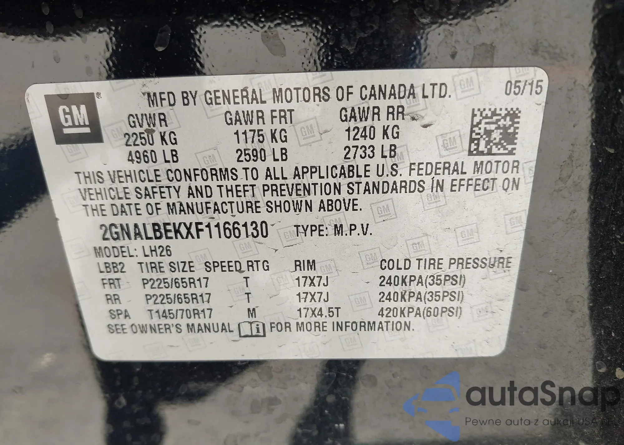 • VIN 2GNALBEKXF1166130