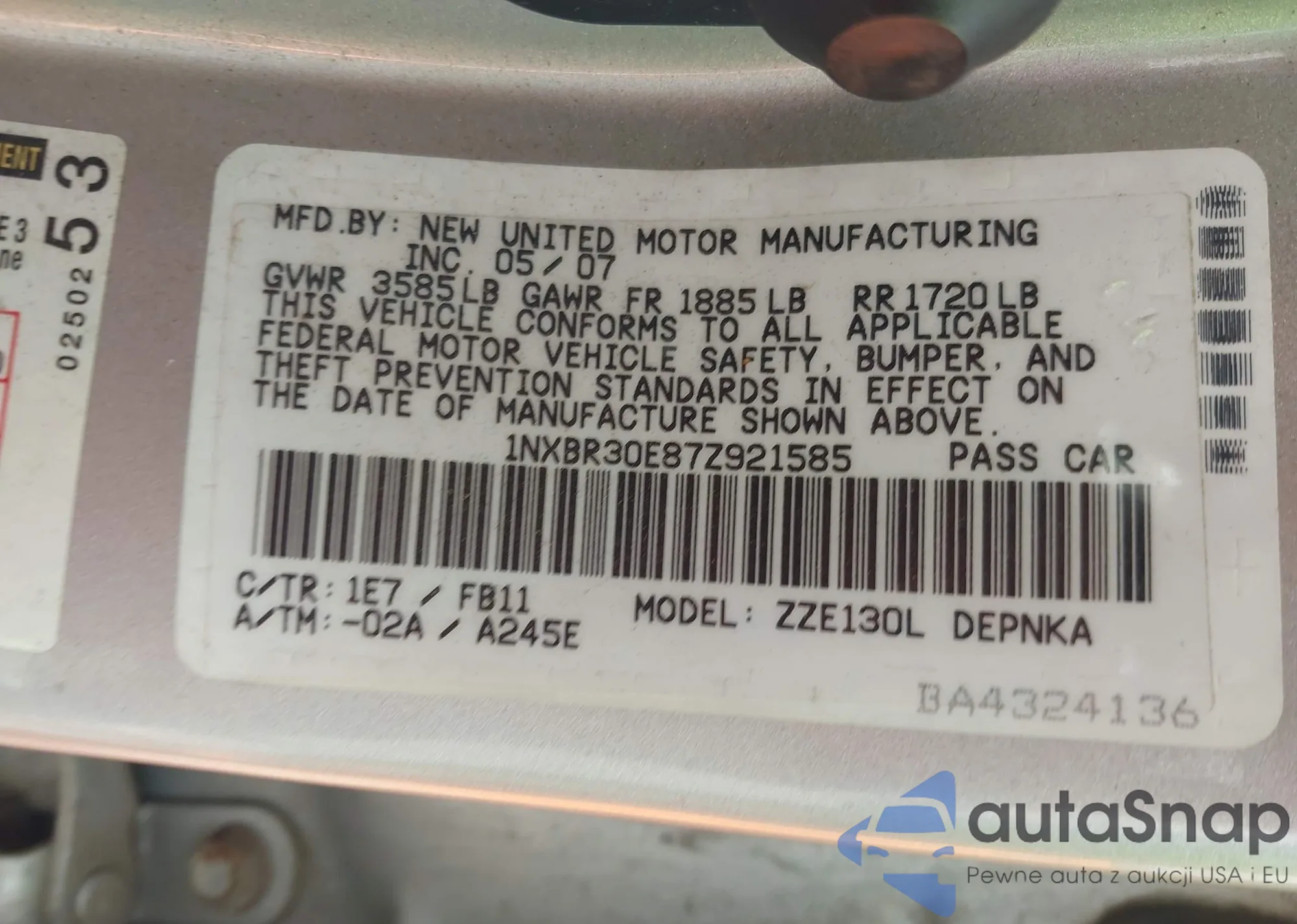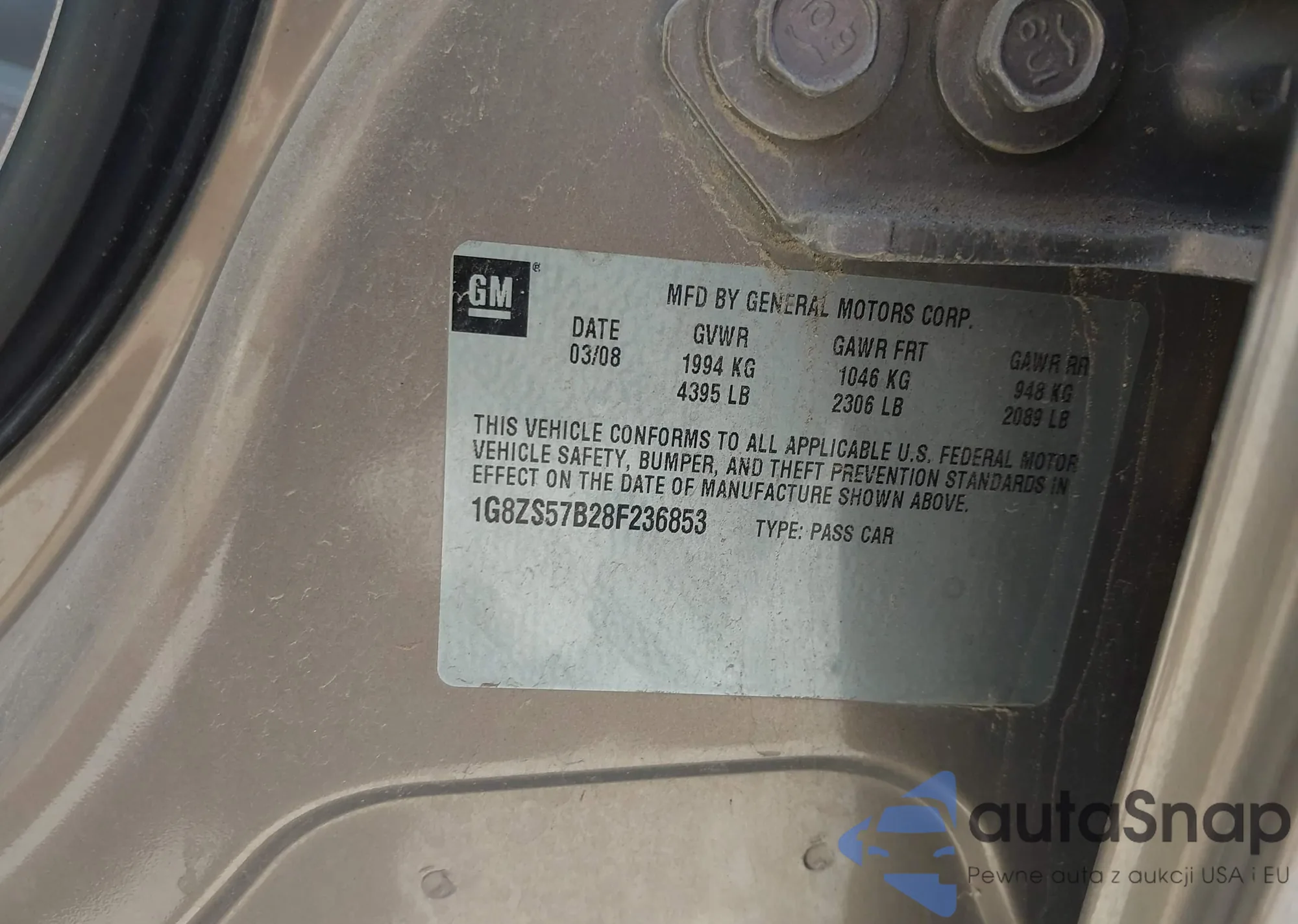 • VIN 1G8ZS57B28F236853