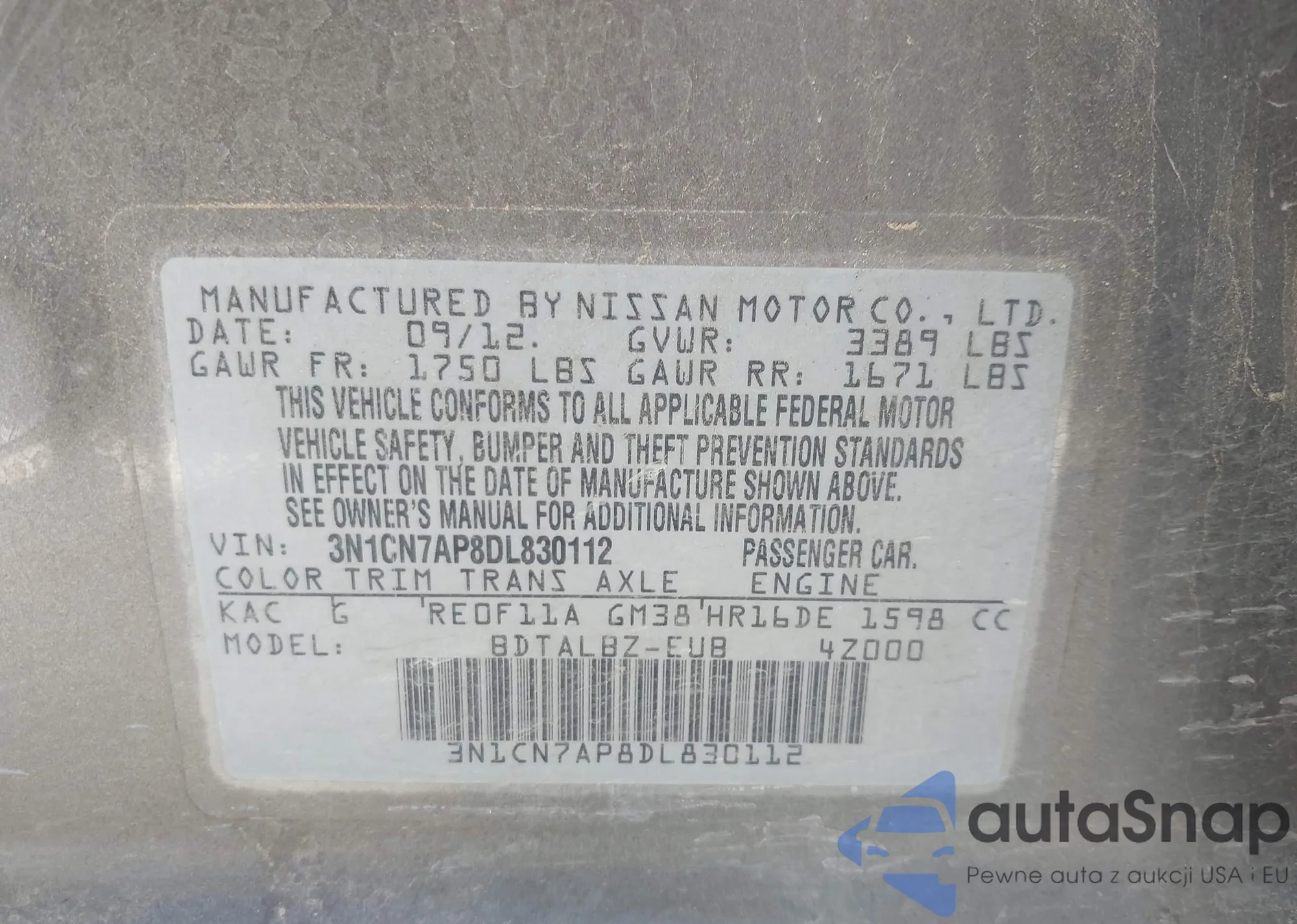 LOT: 42511372 VIN: 5N1AN08U16C542157