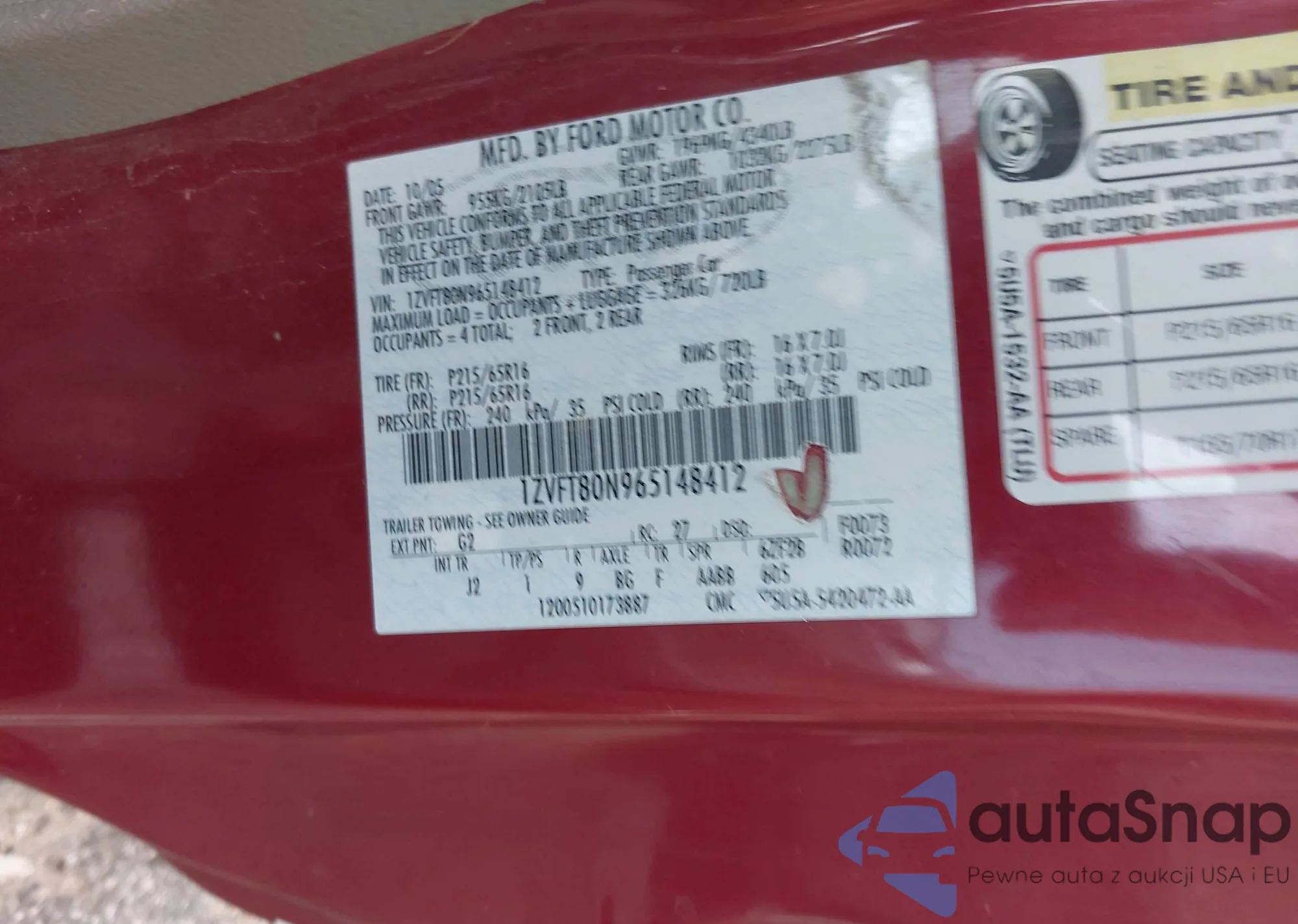 LOT: 42762976 VIN: 1ZVFT80N965148412