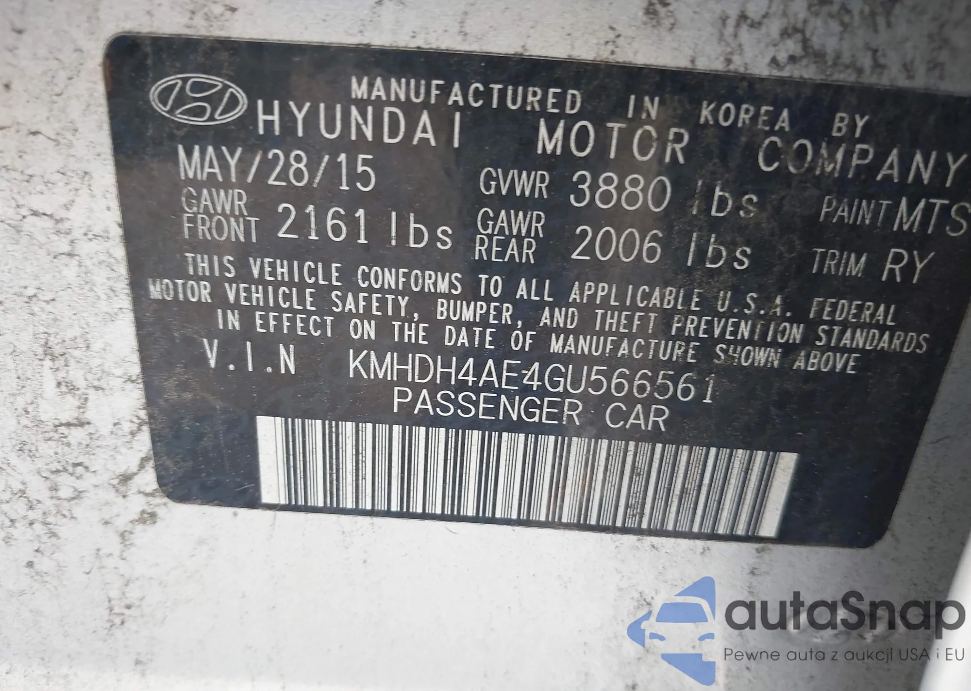 LOT: 42754849 VIN: KMHDH4AE4GU566561