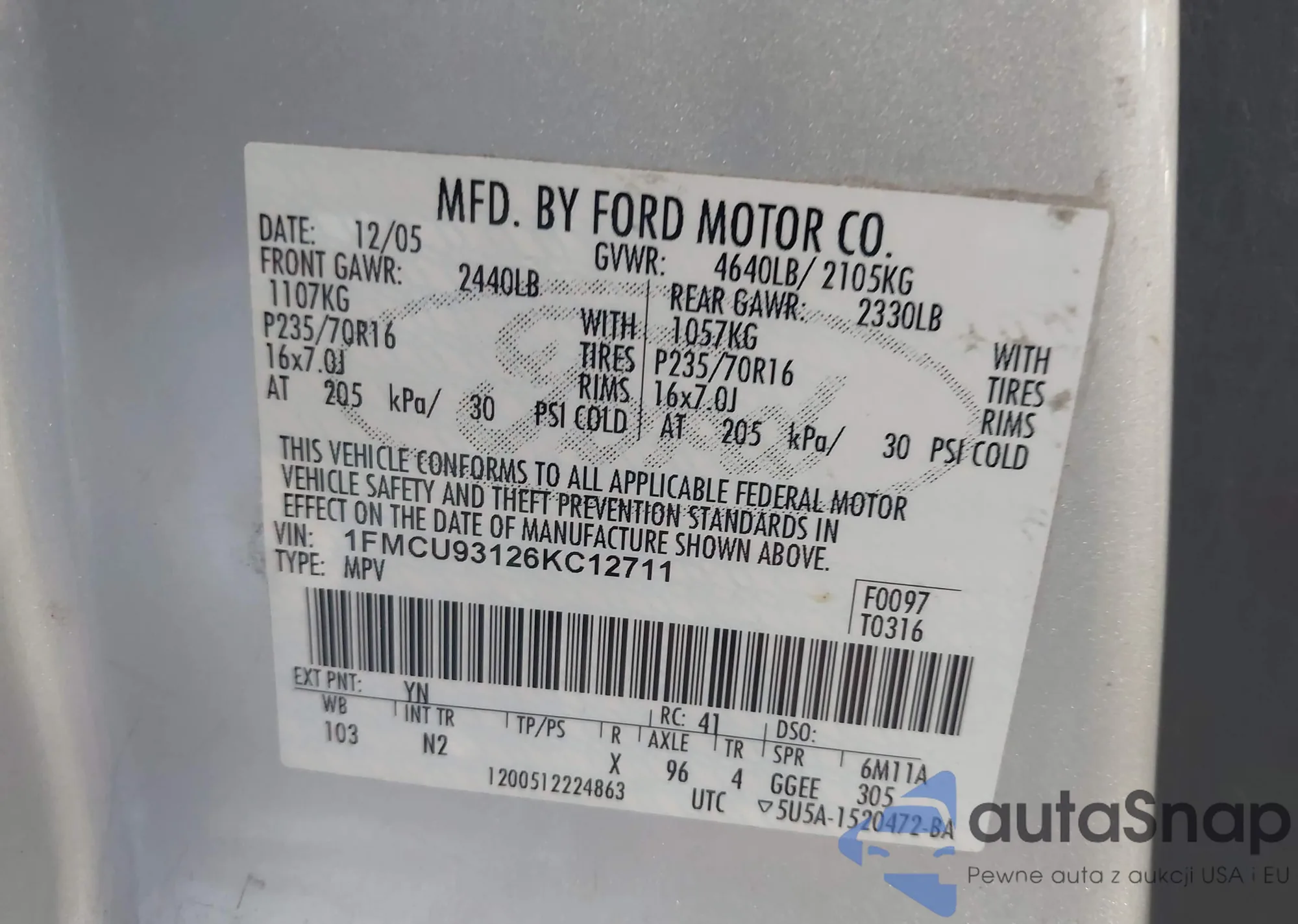 LOT: 42665573 VIN: 1FAFP36372W105309