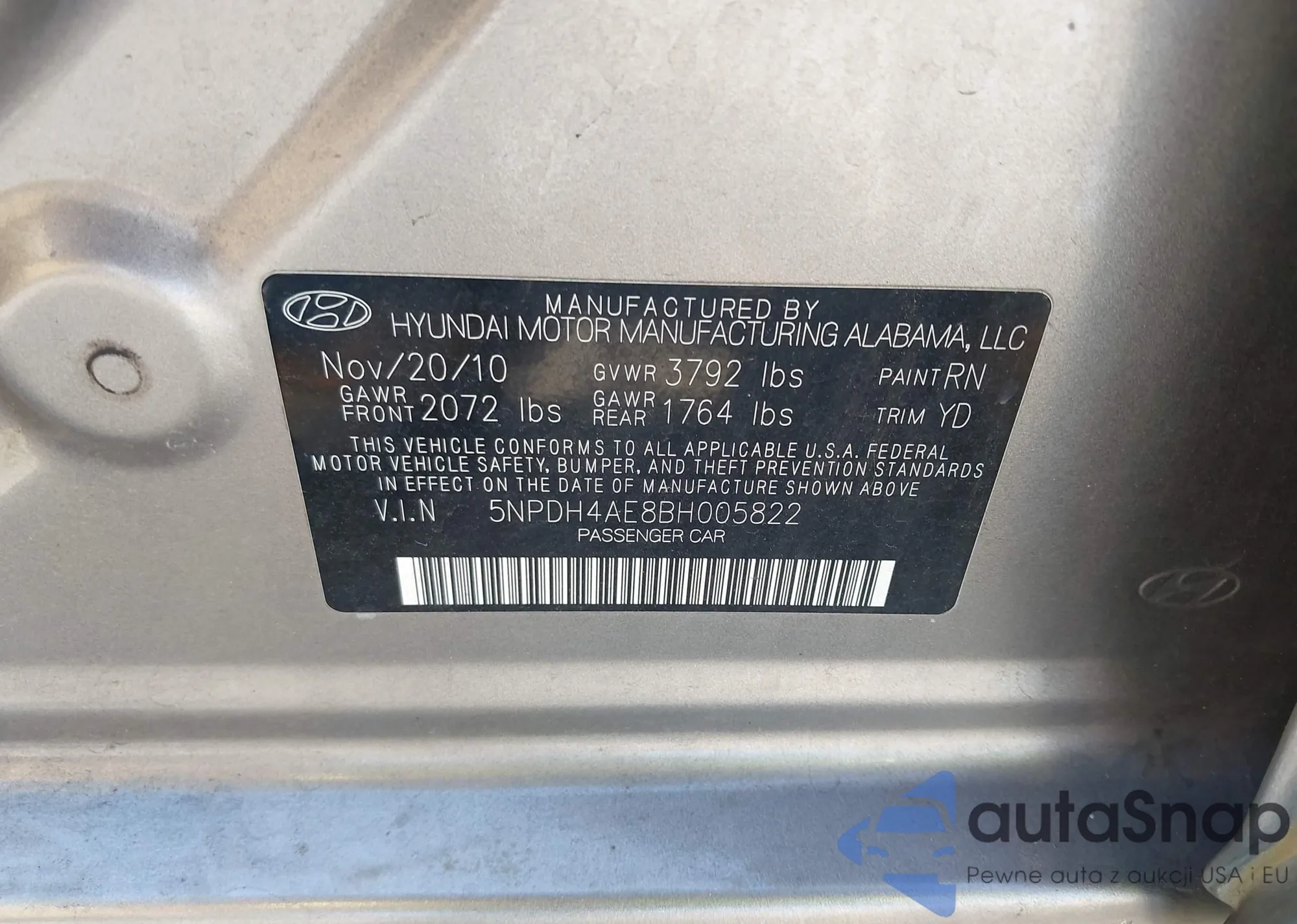 • VIN 5NPDH4AE8BH005822
