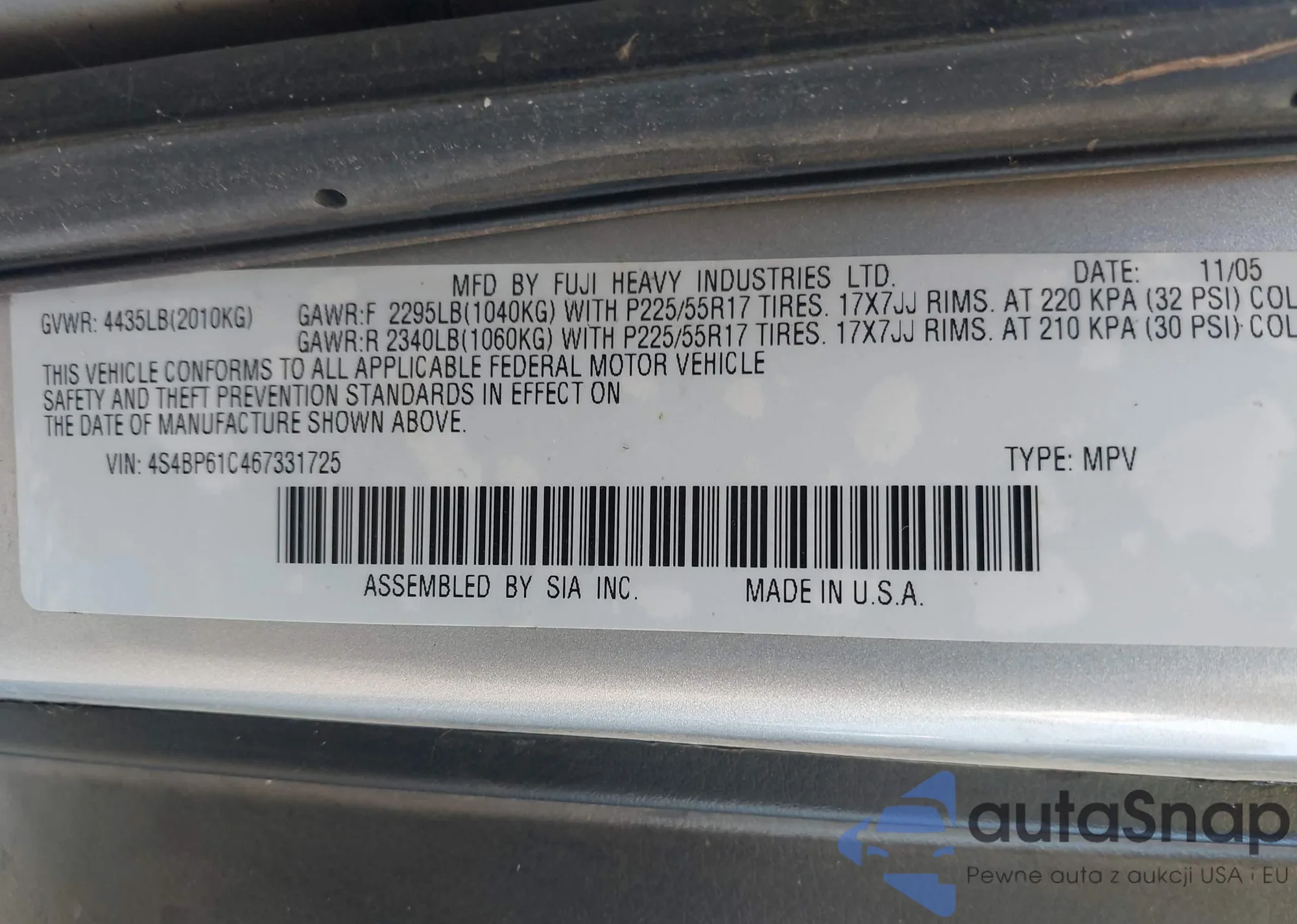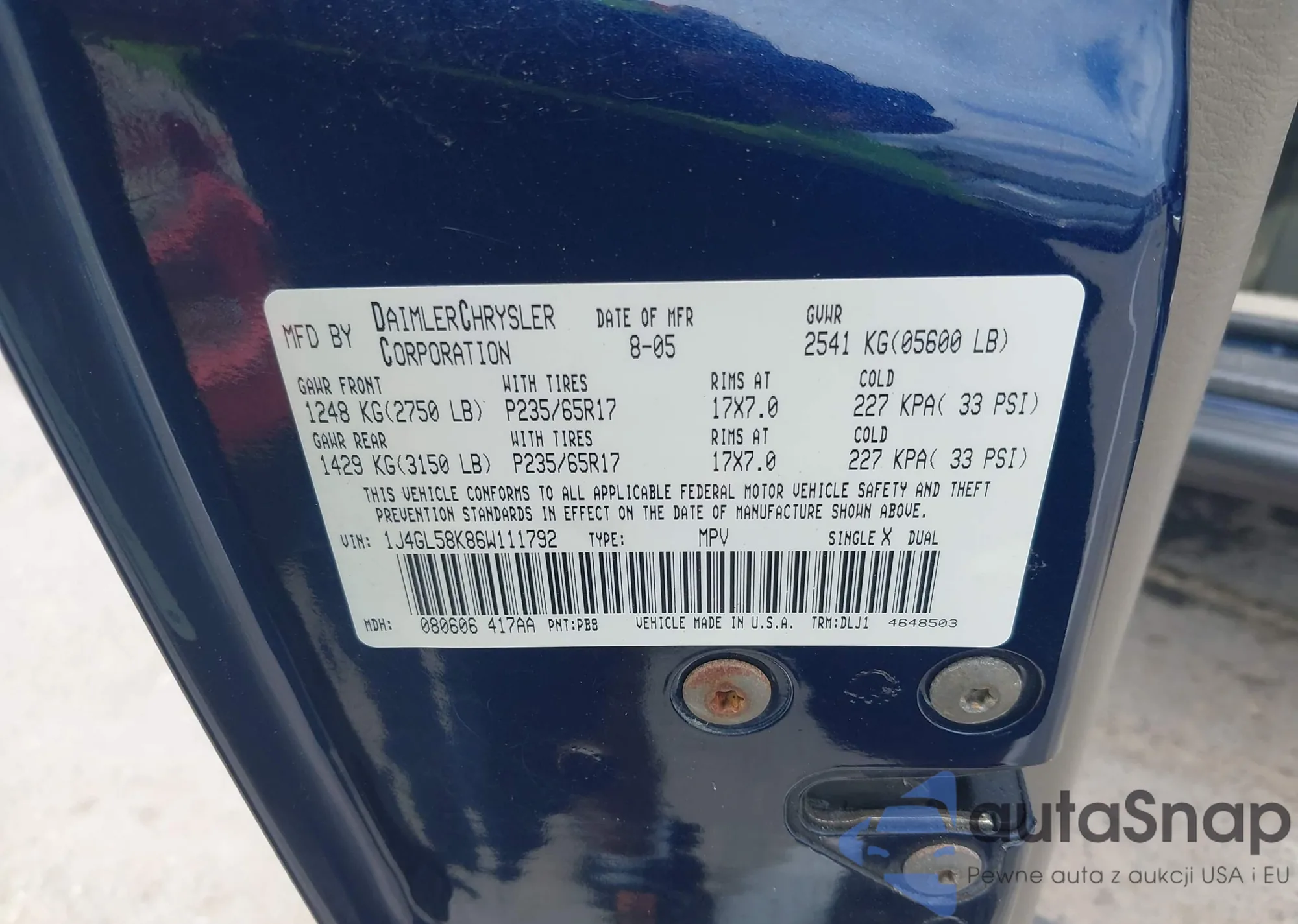 LOT: 42681801 VIN: 1J4GL58K86W111792