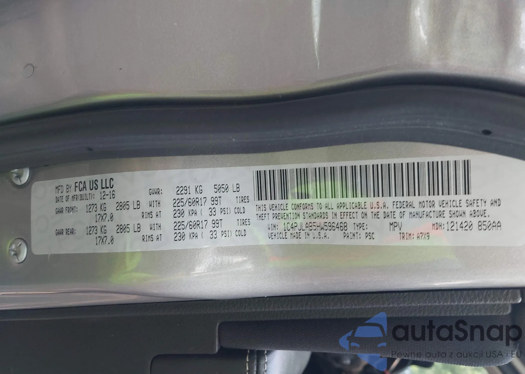 • VIN 1C4PJLAB5HW596468