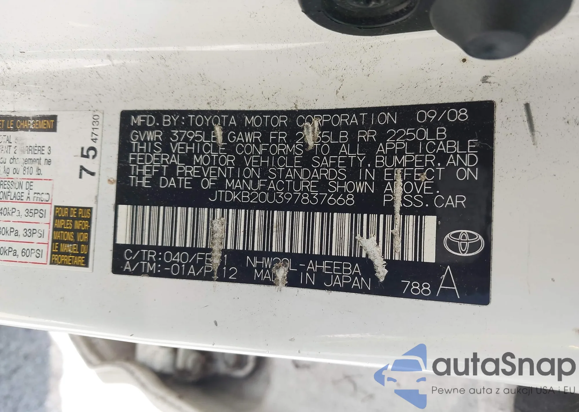 LOT: 42696721 VIN: JTDKB20U397837668