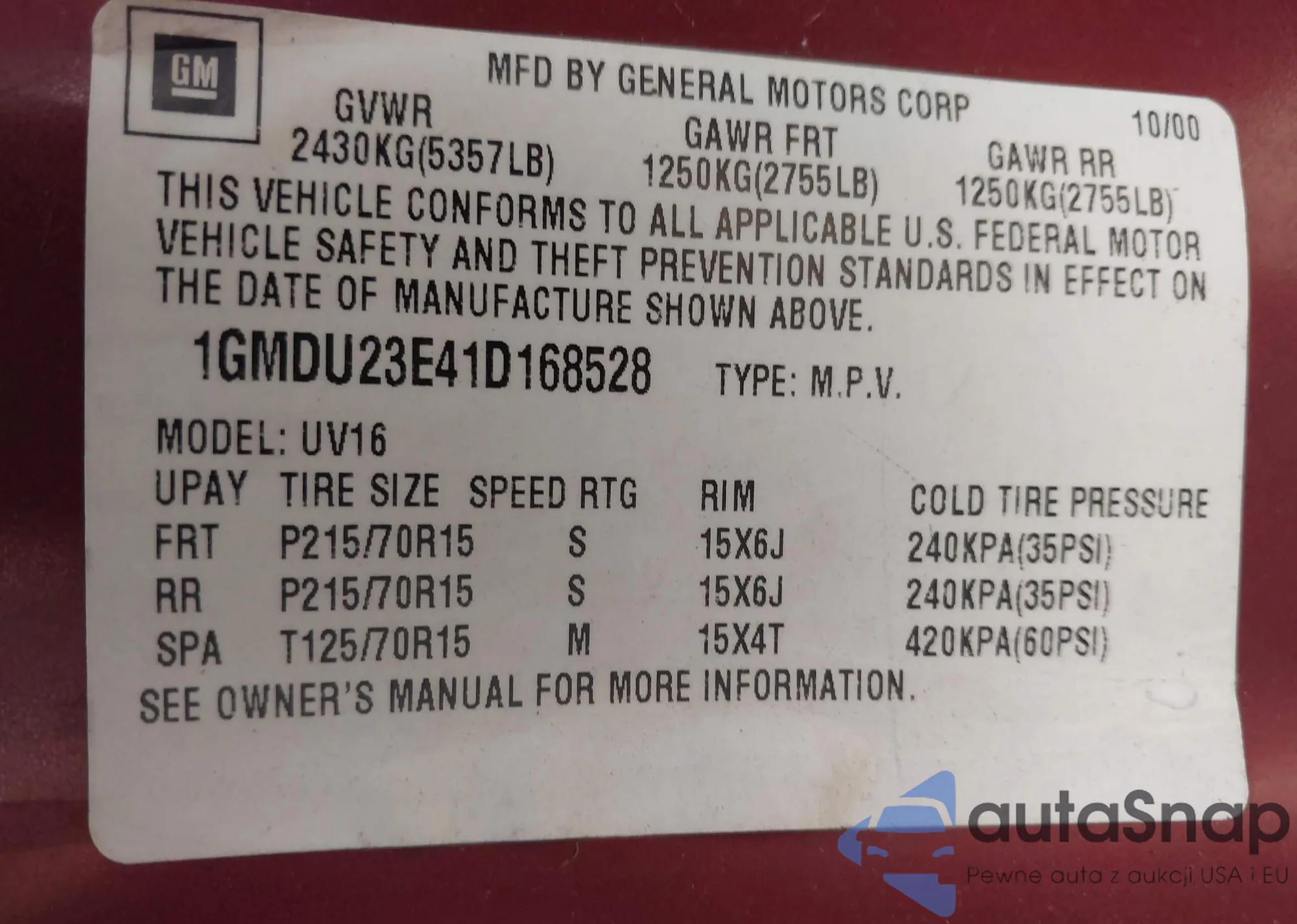 • VIN 1GMDU23E41D168528