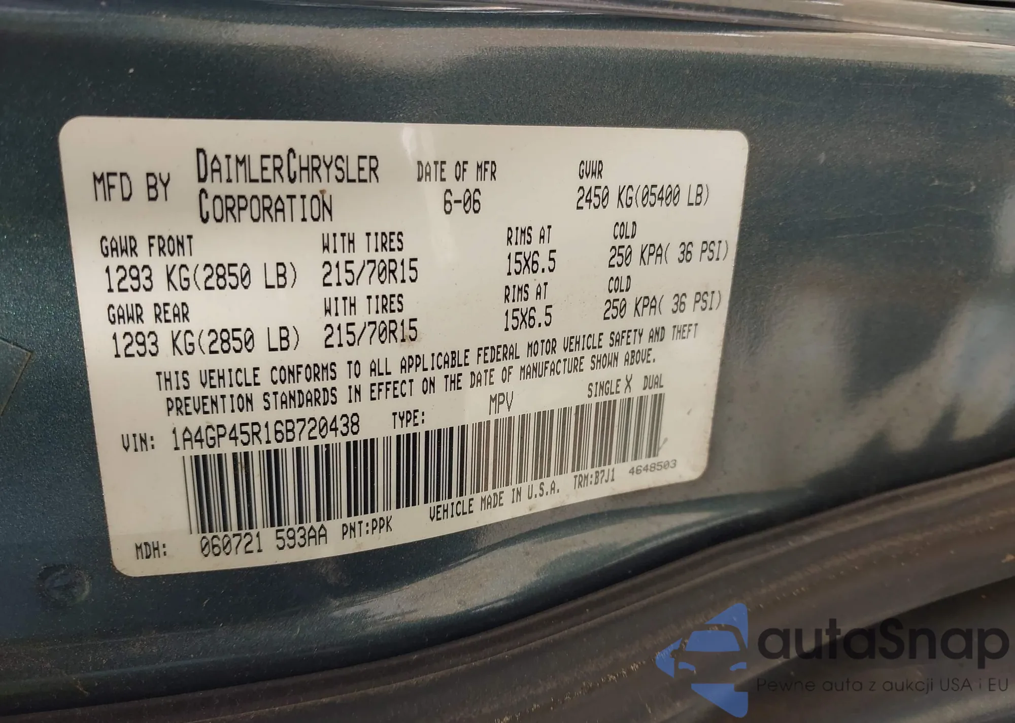 LOT: 42732924 VIN: 1A4GP45R16B720438