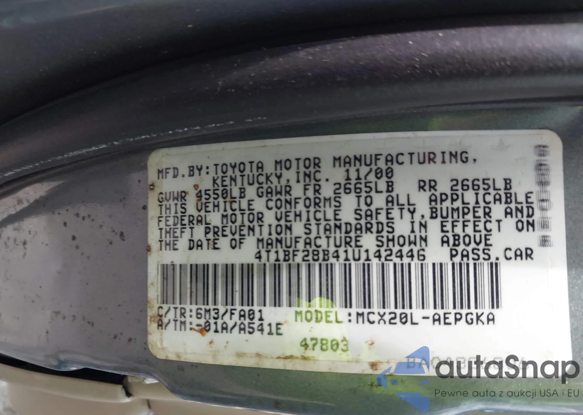 • VIN 4T1BE32KX5U634972