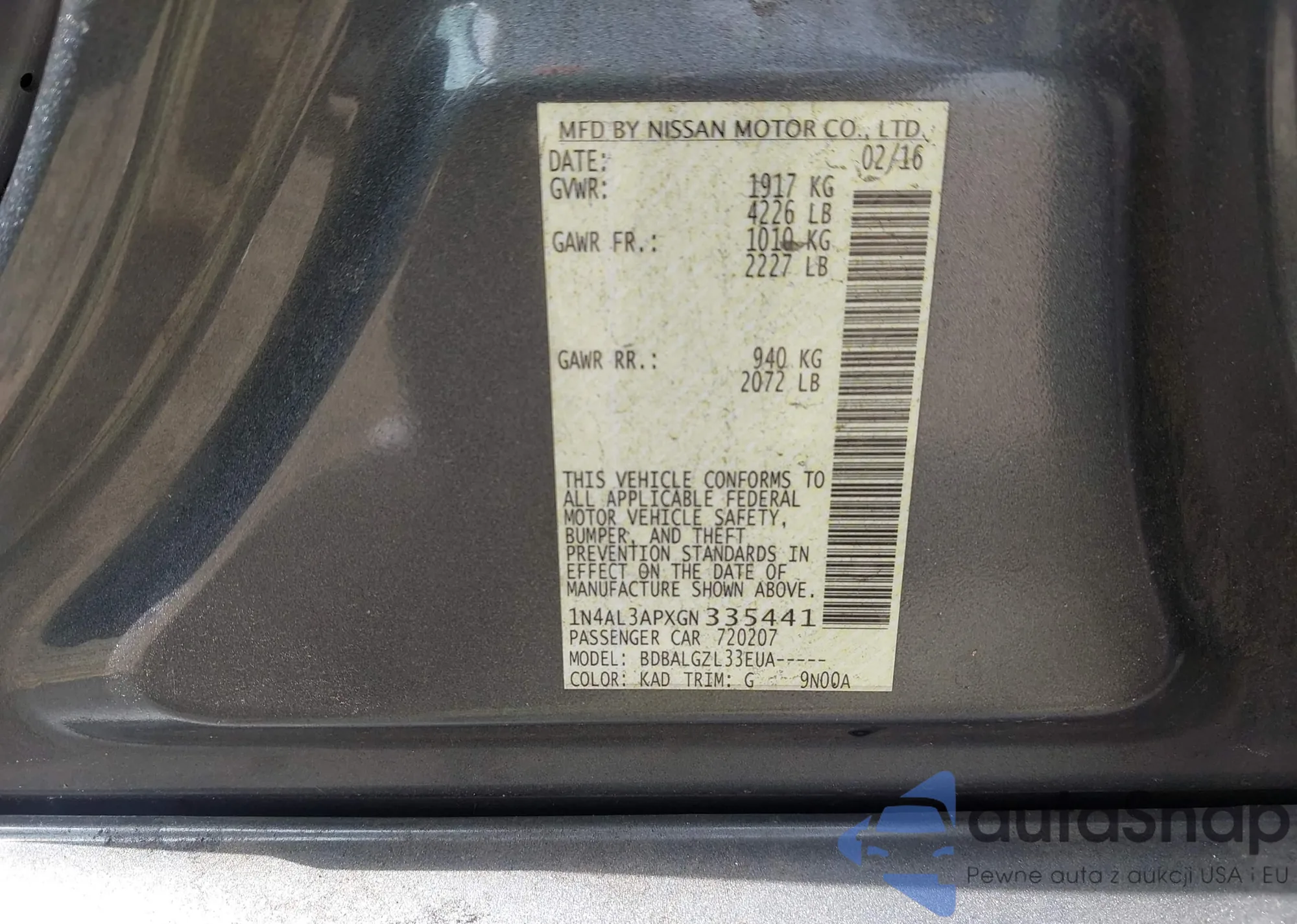 • VIN 1N4AL3APXGN335441