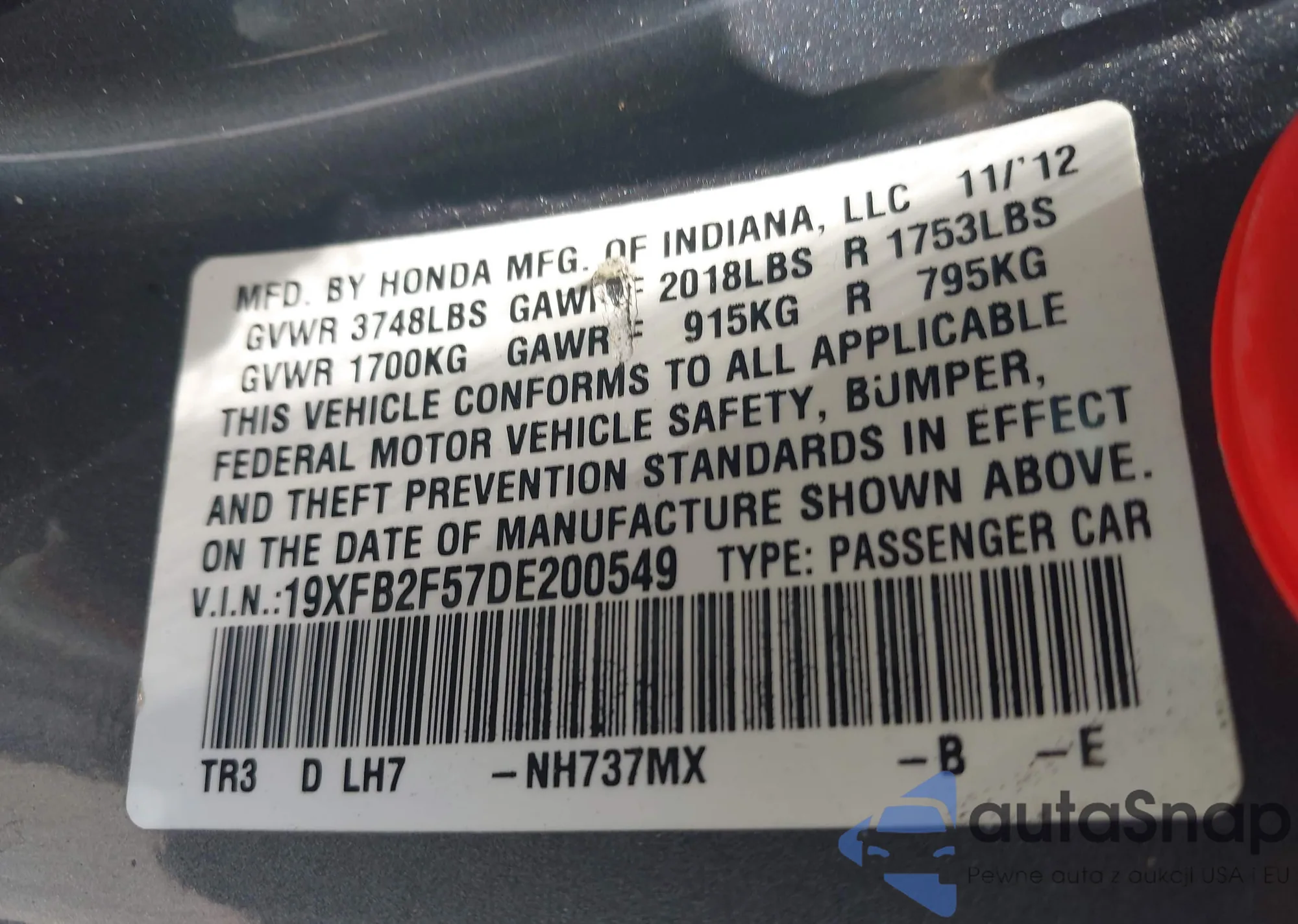 • VIN 19XFB2F57DE200549