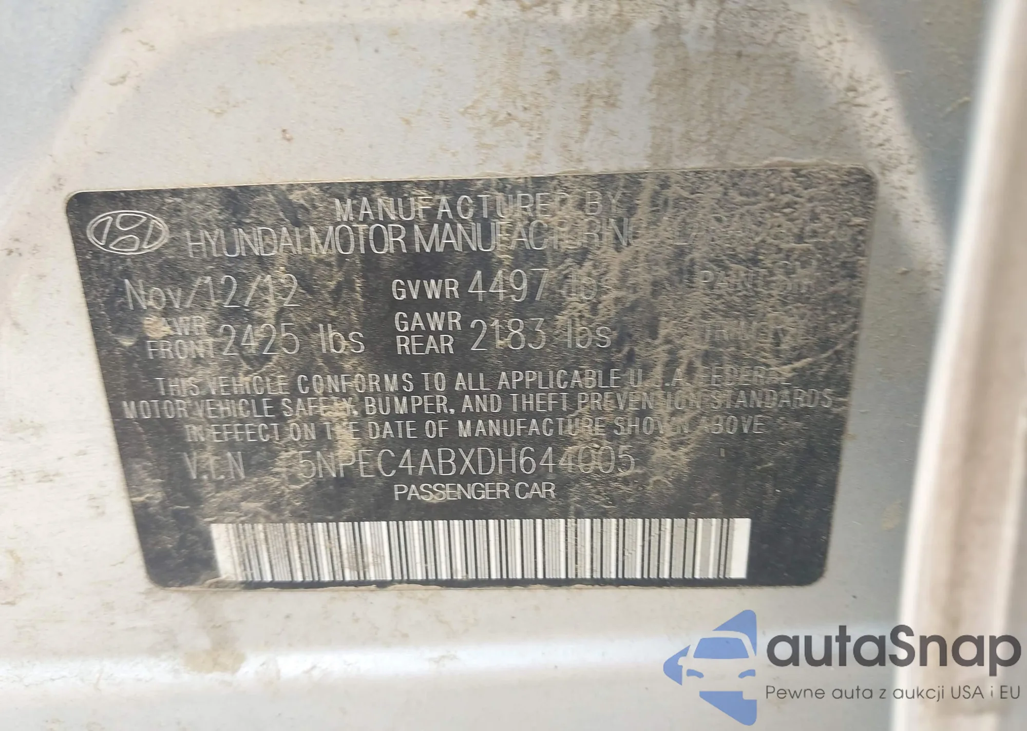 • VIN 5NPEC4ABXDH644005