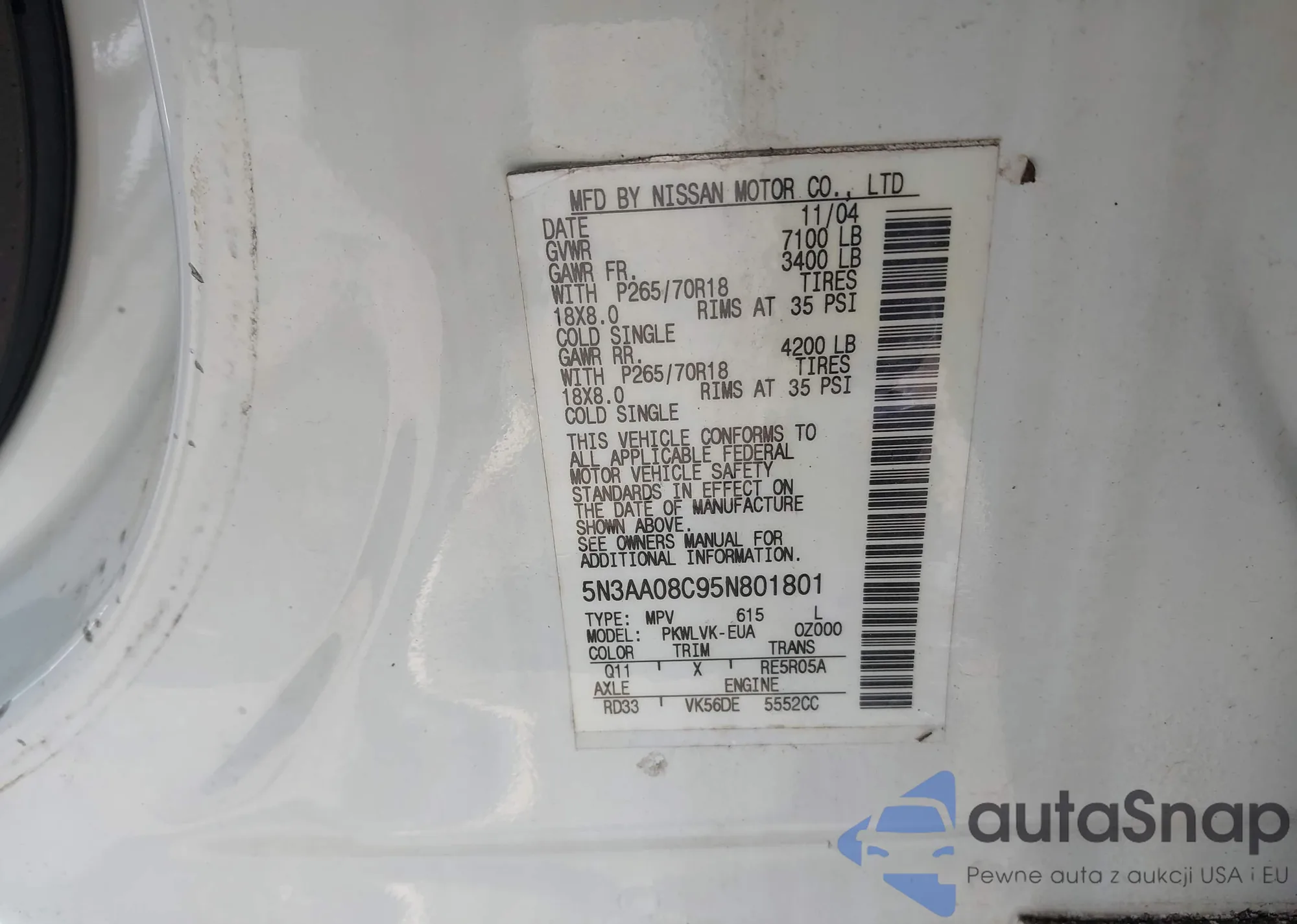 LOT: 42318049 VIN: 5N3AA08C95N801801