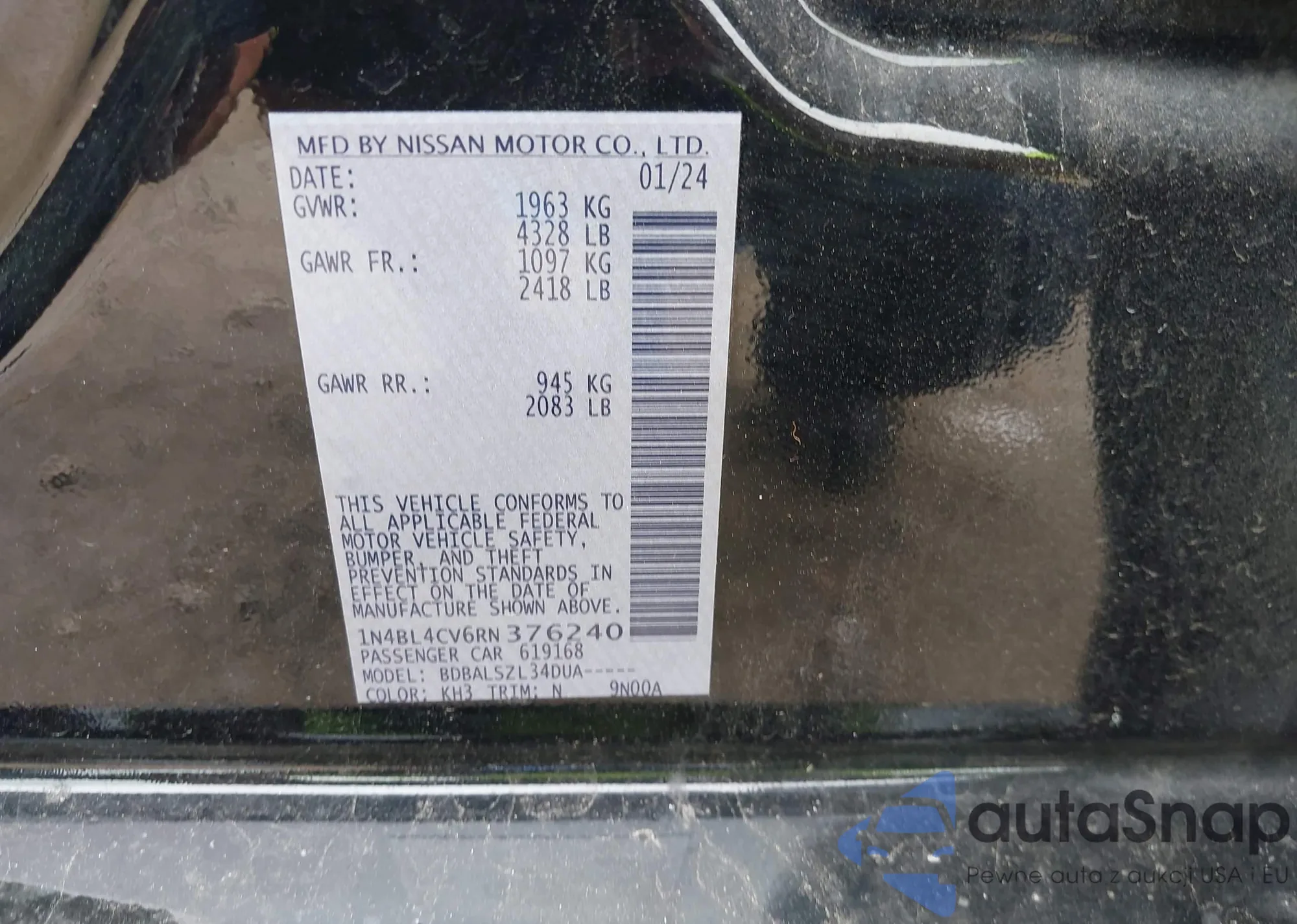 • VIN 1N4BL4CV6RN376240