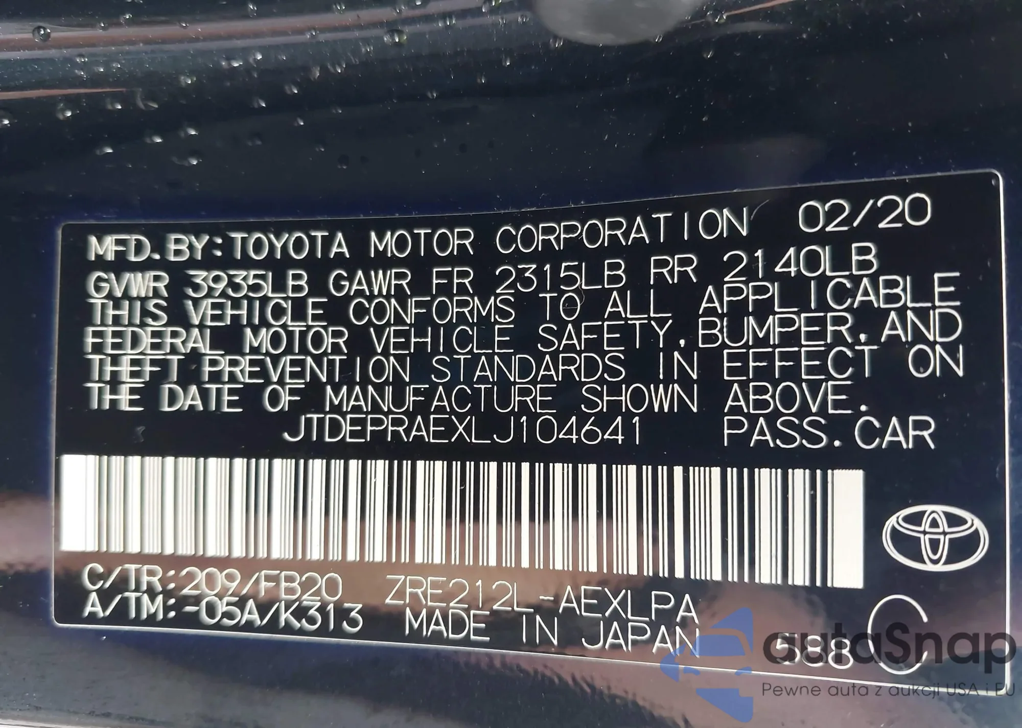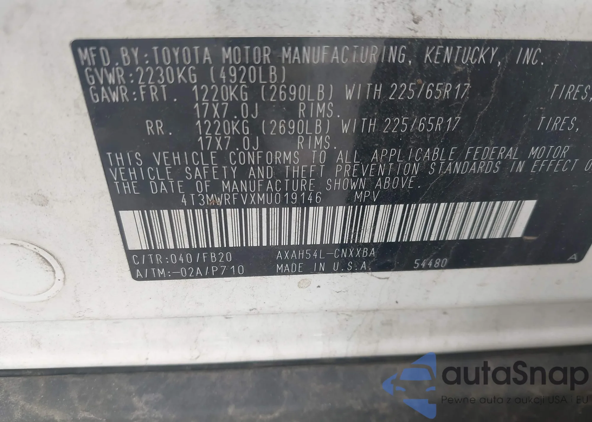 LOT: 42646836 VIN: 4T3MWRFVXMU019146