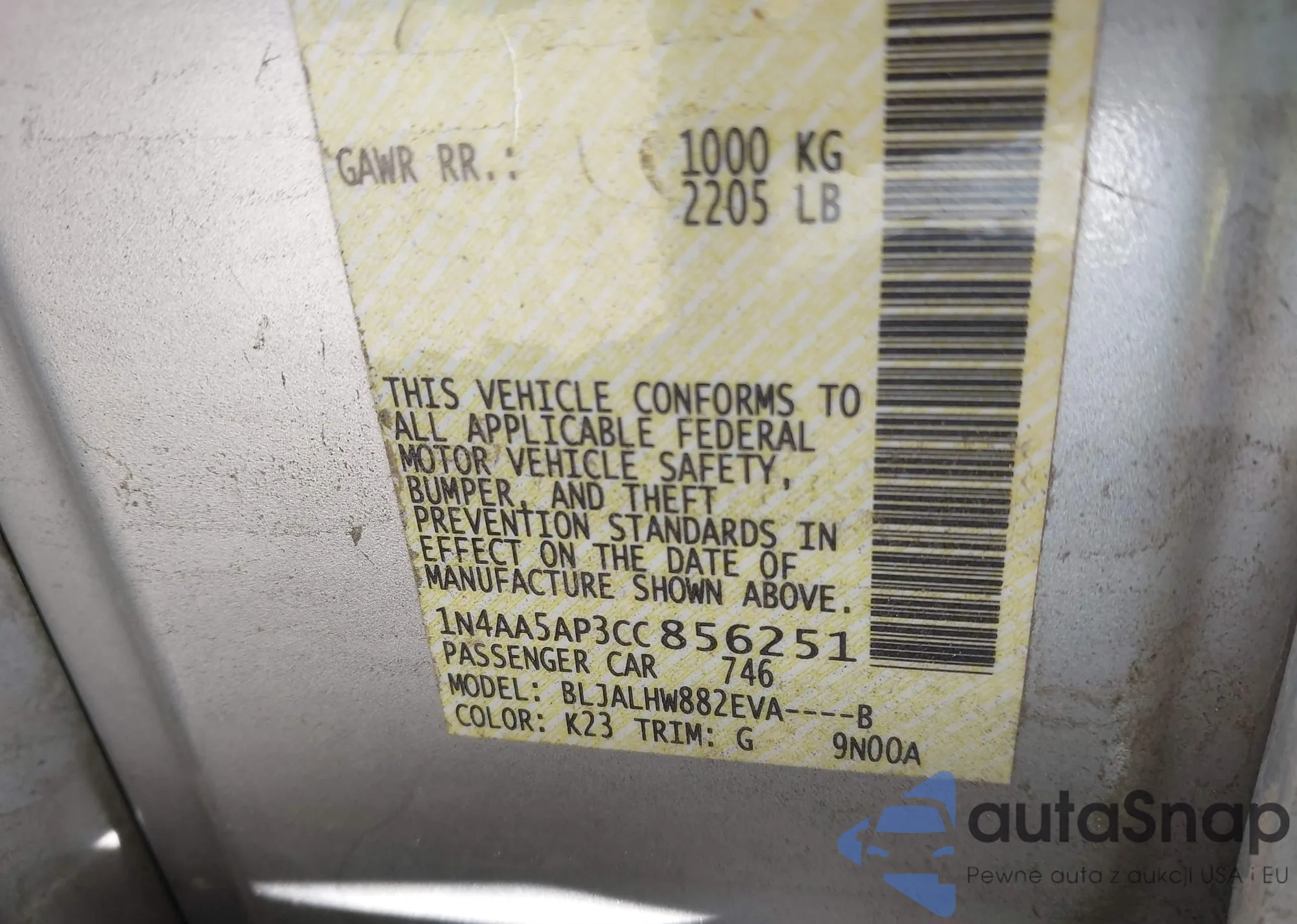• VIN 1N4AA5AP3CC856251