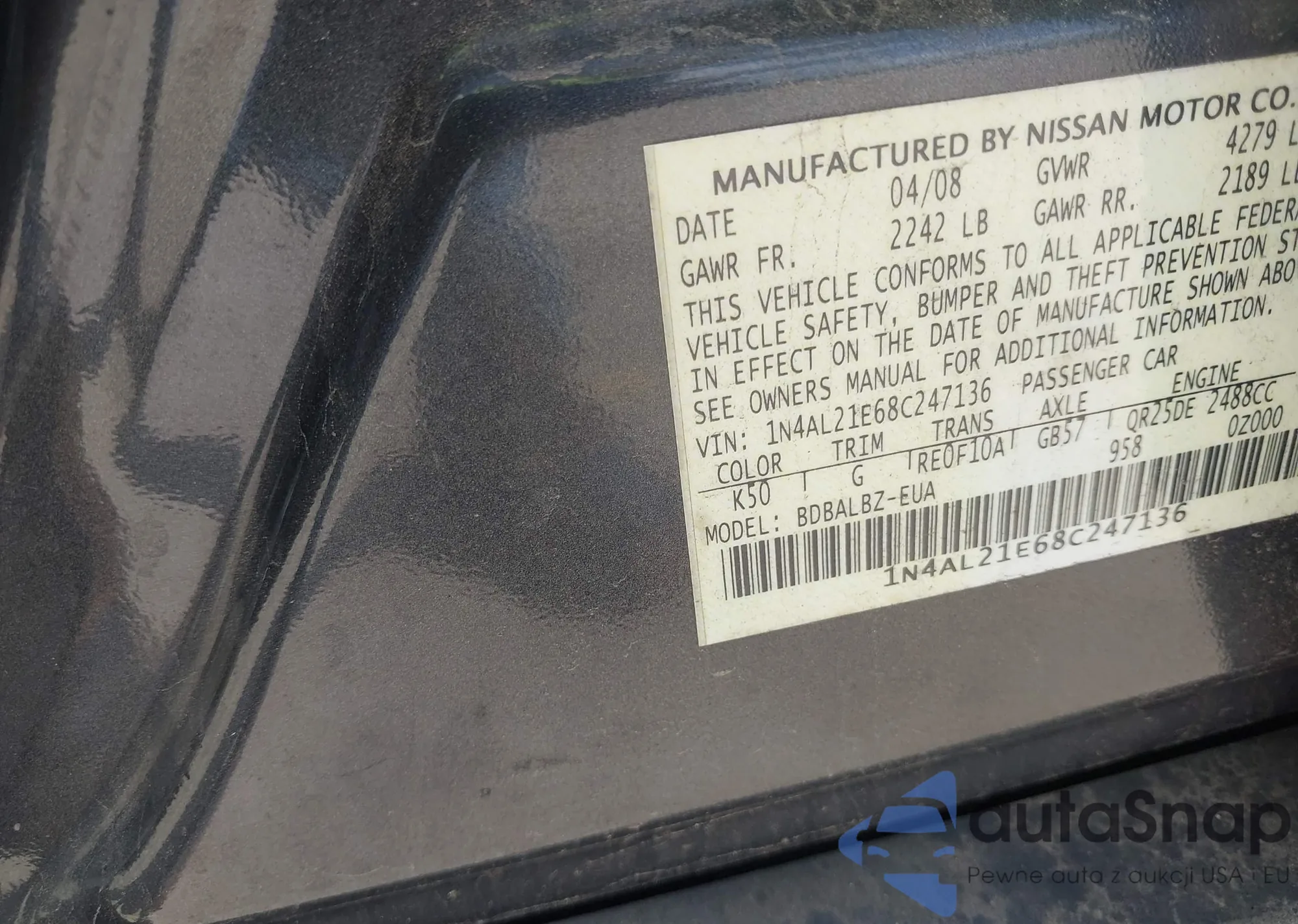 LOT: 42710632 VIN: JTNBK46K483036427
