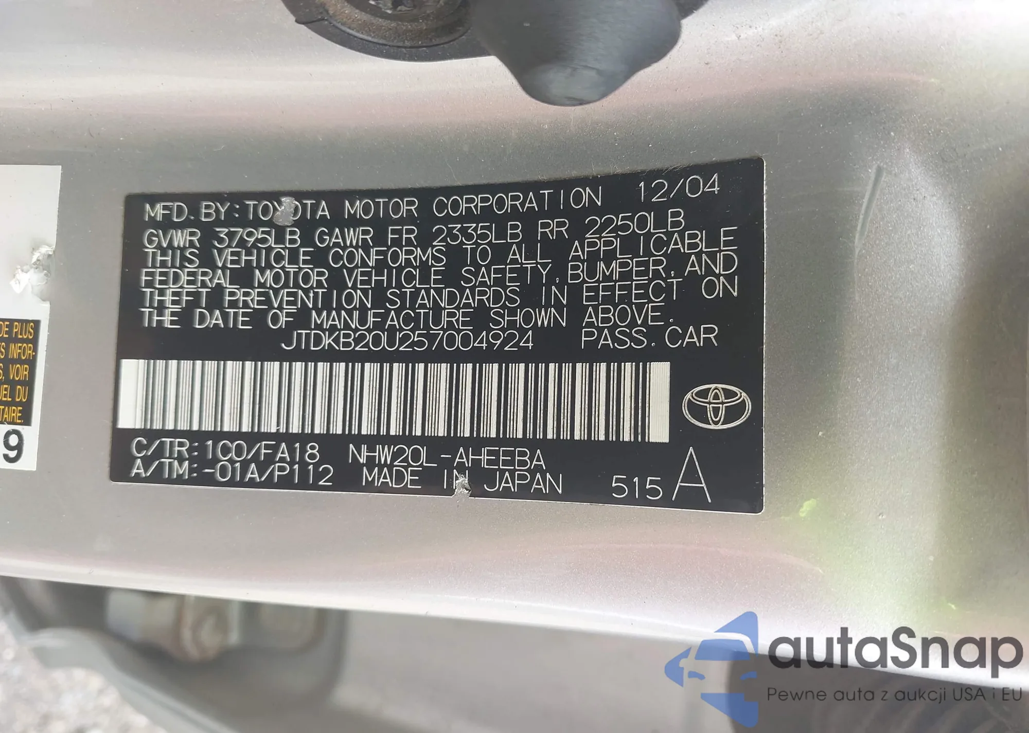 LOT: 42702339 VIN: JTDKB20U257004924
