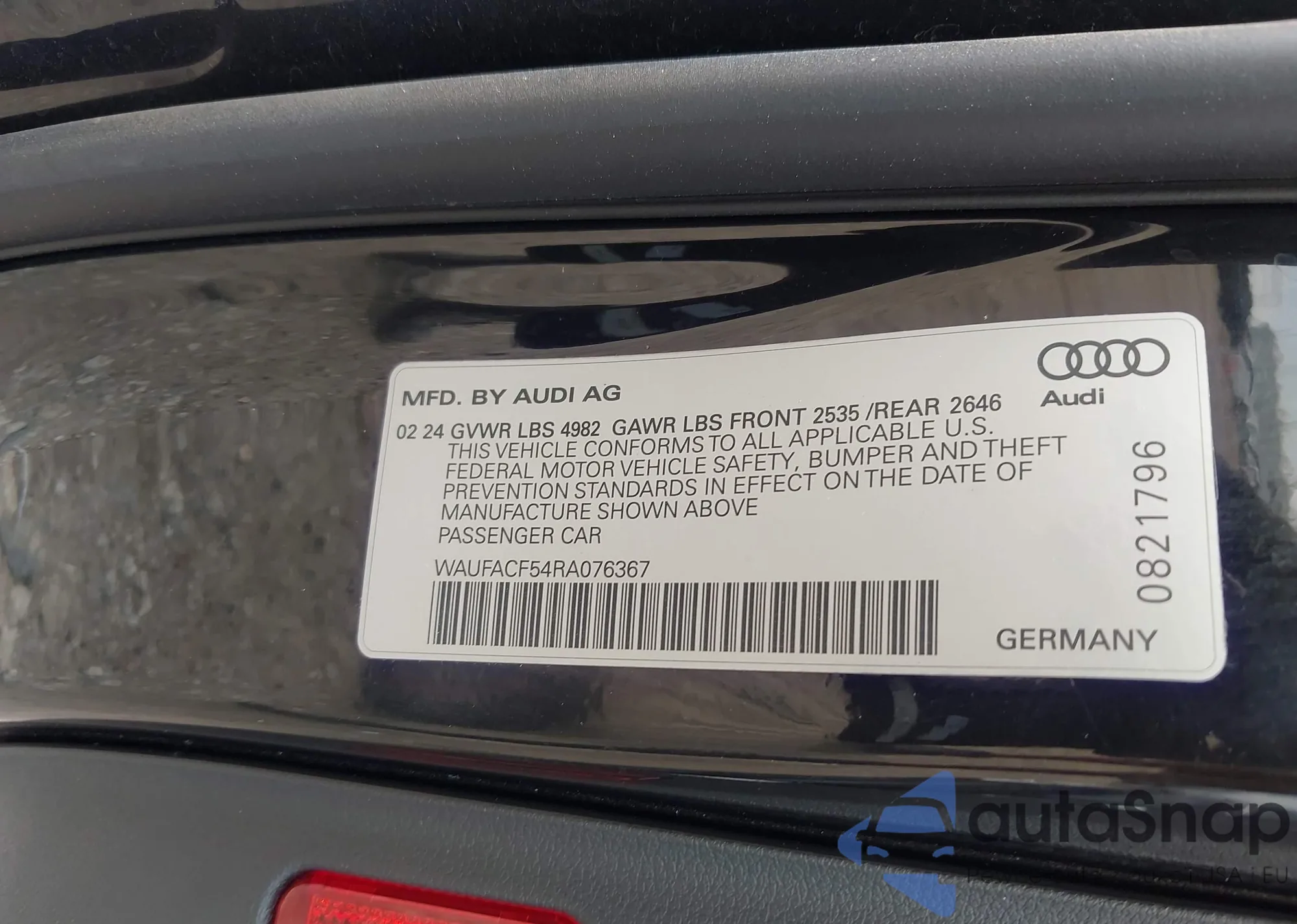 • VIN WAUFACF54RA076367