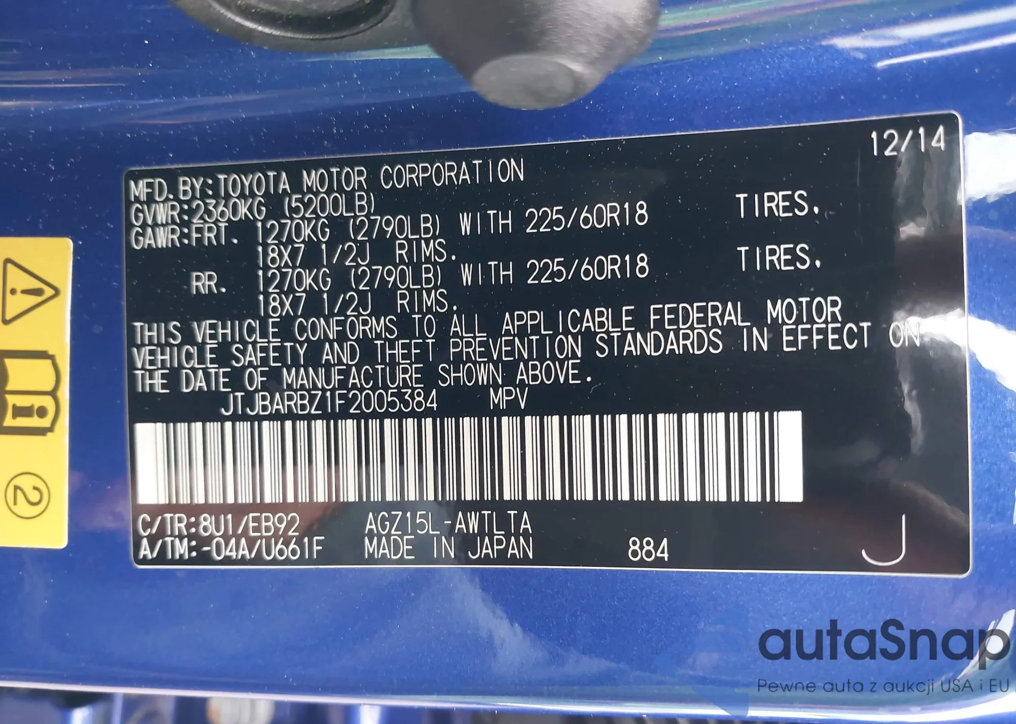 LOT: 42697179 VIN: JTDKB20U453099722