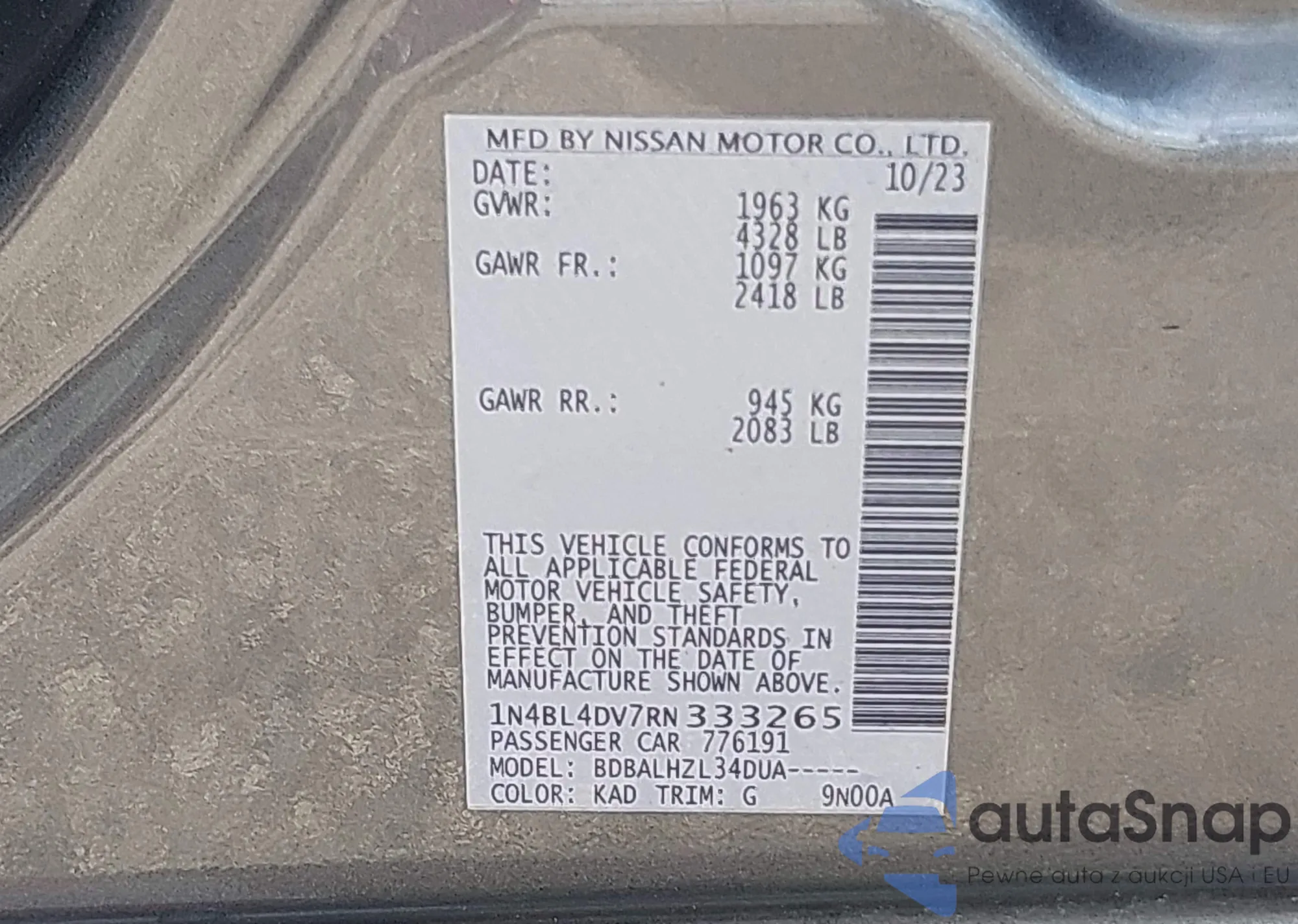 LOT: 42739860 VIN: 1N4BL4DV7RN333265